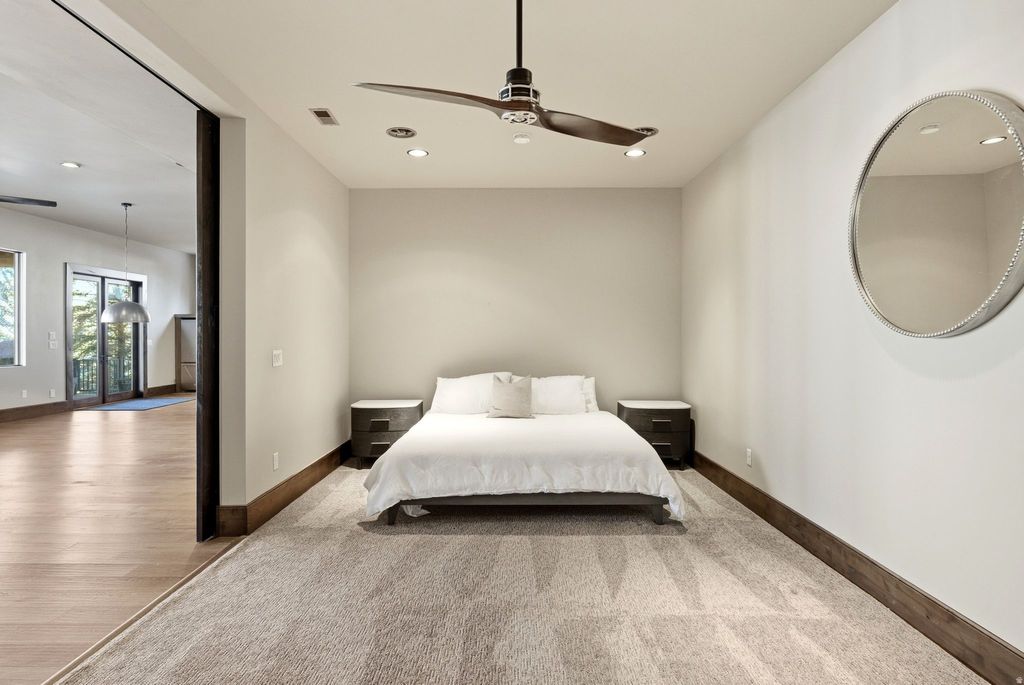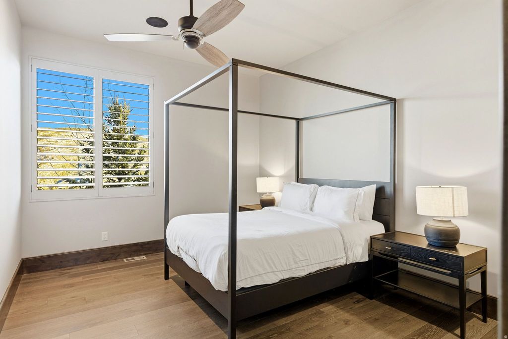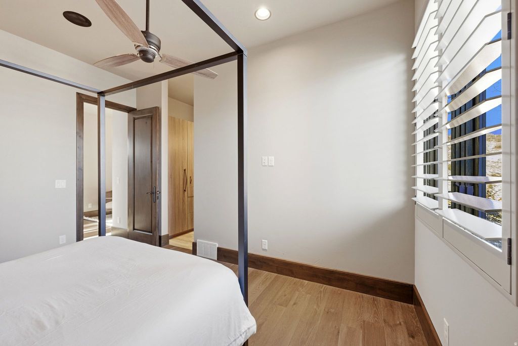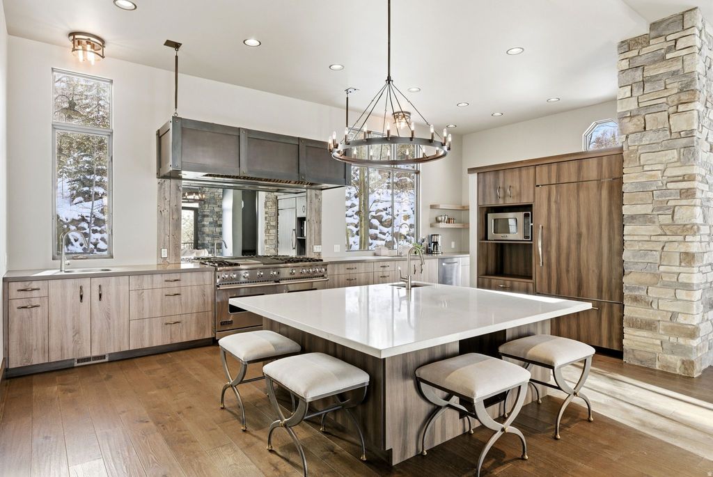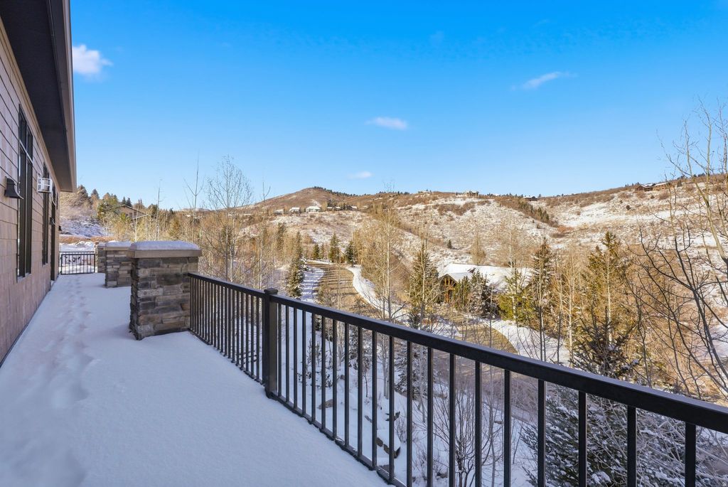 Tucked away on 1.35 private acres in the heart of Jeremy Ranch, this custom mountain residence delivers a rare combination of architectural sophistication and effortless livability. Designed with a modern mountain aesthetic, the home embraces its surroundings through generous glass, elevated ceilings, and a flowing layout that connects interior spaces to the outdoors. The primary suite on the main level creates an ideal everyday retreat, while two private ensuite bedrooms upstairs provide comfortable separation for guests or family. The lower level introduces exceptional flexibility with a fully self-contained apartment suite spanning approximately 2,000 square feet, complete with its own kitchen, fireplace, expansive patio, and a multi-purpose room suited for additional sleeping space, recreation, or entertaining. Outdoor living is a defining element of the property, offering multiple destinations to enjoy the setting-from a rooftop deck with sweeping views to a sheltered patio with fireplace, a private porch designed for quiet evenings, and a wraparound deck ideal for hosting guests. Mature landscaping, established walking trails, and a built-in gas fire pit enhance the sense of privacy and connection to nature. Despite its secluded feel, the home is ideally positioned just minutes from Park City amenities and ski resorts, and approximately 30 minutes from Salt Lake City International Airport. This is a thoughtfully designed and exceptional mountain contemporary home that balances privacy, comfort, and convenient access-an uncommon opportunity in one of the area's most desirable communities.
