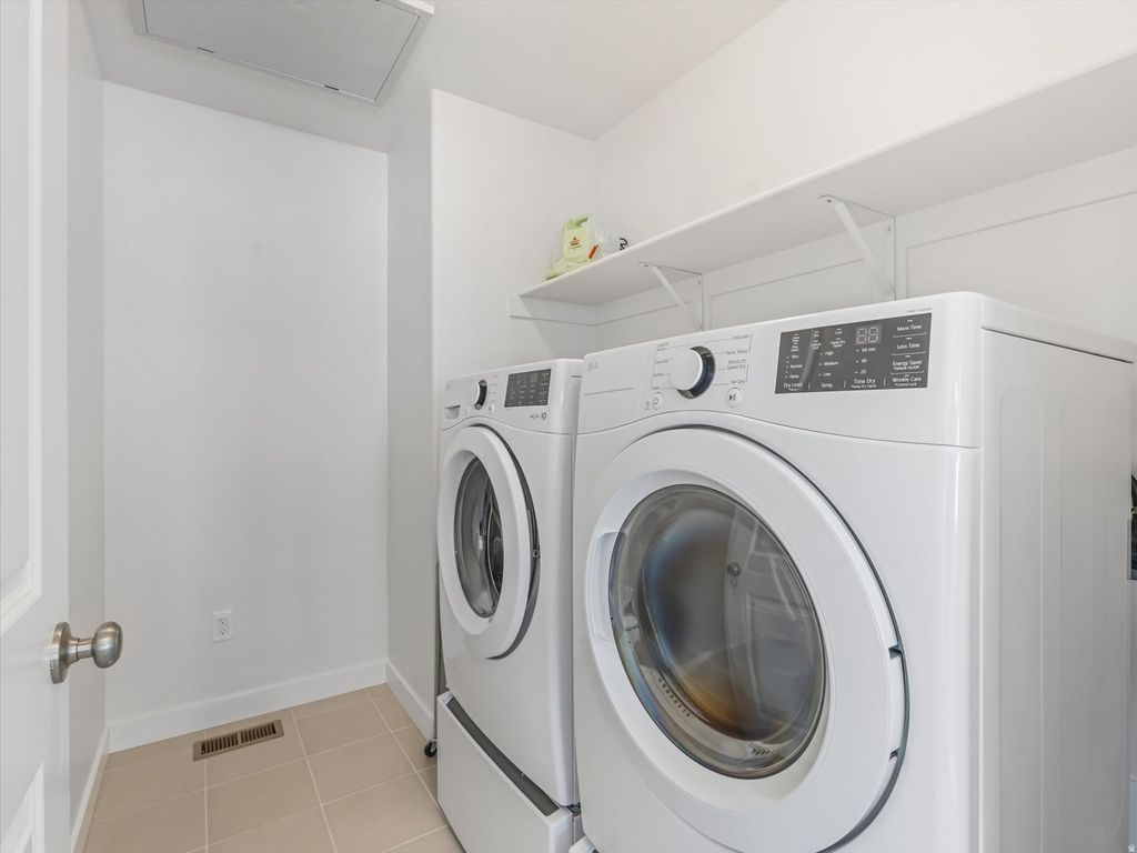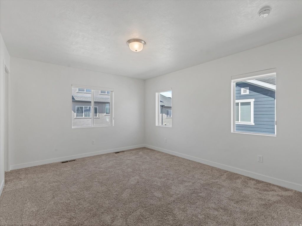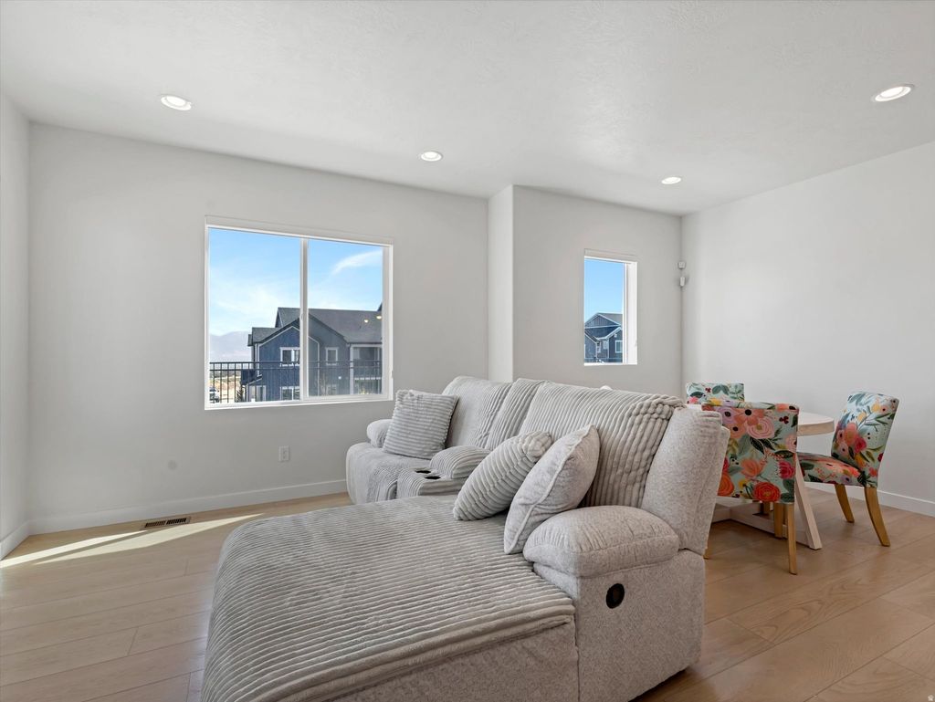 Like-new Buchanan end-unit townhome in the Sky Ranch community. Enjoy all the perks of new construction without the wait time & upgrade costs. This home includes window coverings, high end fridge, washer/dryer, water softener and more. This floor plan features a bright, open layout with two primary suites, each with walk-in closets. The main primary offers dual sinks and a garden tub/shower combo. Unfinished basement provides room to grow. Conveniently located near Mountain View Corridor, major commuting routes, shopping, and dining. Community amenities include pool, cabana, pickleball courts, and playground. Furniture used for staging available for purchase at an additional cost. Square footage figures are provided as a courtesy estimate only and were obtained from previous listing. Buyer is advised to obtain an independent measurement.