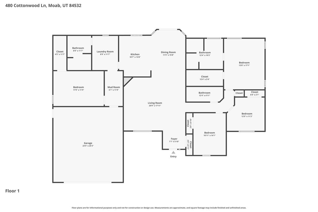 BACK YARD BEAUTY! This beautifully maintained Moab home is located on a charming cul-de-sac, offering a unique blend of comfort, space, and convenience. Just minutes from downtown, schools, parks, restaurants, and grocery stores, and only a few blocks from Moab's scenic pathways, this home places you right where you want to be. The home features 4 generously sized bedrooms and 3 full bathrooms, providing ample space for family, guests, or a home office. The primary suite offers a true retreat with a large walk-in closet and a well-appointed en-suite bath complete with a tile and glass block shower along with a jetted tub. The living room welcomes you with vaulted ceilings and a cozy gas fireplace, creating a bright and inviting atmosphere. The spacious kitchen is well appointed with a large granite island, offering plenty of room for cooking, gathering, and everyday living. Just off the kitchen, the dining area opens to the backyard patio and outdoor living space, creating an easy indoor-outdoor connection. Step outside to your back yard retreat designed for endless enjoyment, featuring lush green grass, a spacious patio, and a fire pit area, perfect for relaxing evenings or entertaining under the Moab sky. Don't forget the toys! The extra wide two car garage offers plenty of room for vehicles, storage, and all your adventure gear. Square footage figures are provided as a courtesy estimate only and were obtained from images. Buyer is advised to obtain an independent measurement.