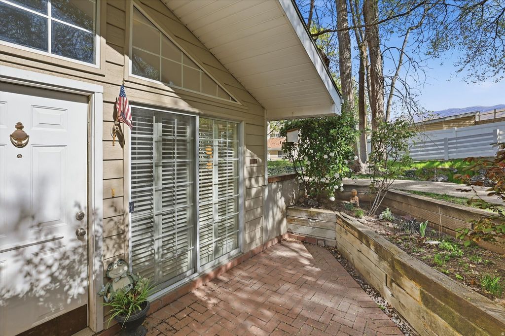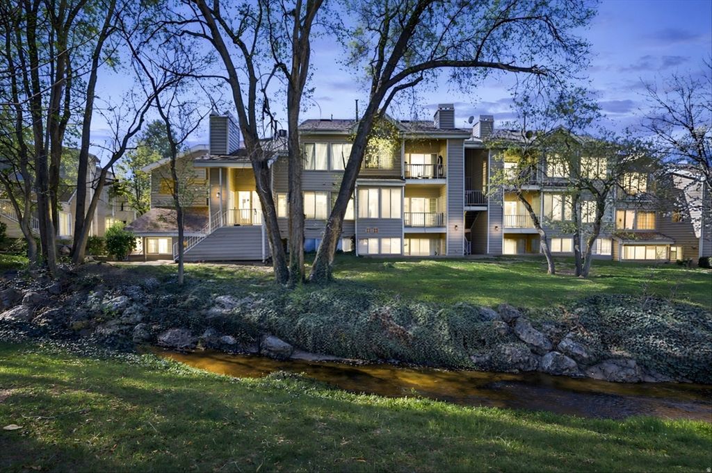 Experience the ultimate in privacy and timeless comfort with this immaculately maintained, main-level condo. Originally the community's model home, this residence offers a classic, intentional layout with distinct rooms that provide a sense of quiet and separation. The kitchen serves as a charming focal point, featuring a unique red brick oven surround that adds character and warmth. Tucked away in the community's most private location, your patio and personal garden look directly onto a tranquil river and bridge crossing, framed by hundreds of mature, towering trees. Inside, you'll find practical upgrades like newer appliances and a cozy gas fireplace. The primary bedroom includes a versatile, sun-filled alcove-perfect for a private library, a dedicated craft space, or a peaceful indoor garden. If you're looking for a move-in-ready home that prioritizes peace, privacy, and traditional charm at an accessible price, this is it. Note: Square footage figures are courtesy estimates; buyers are advised to obtain independent measurements.