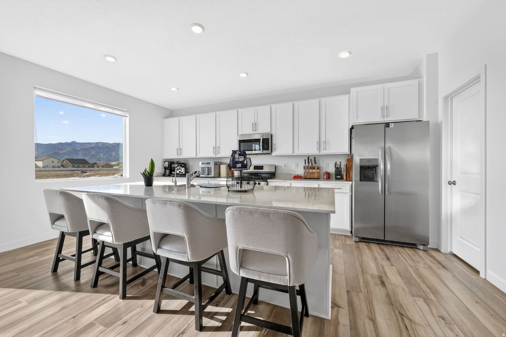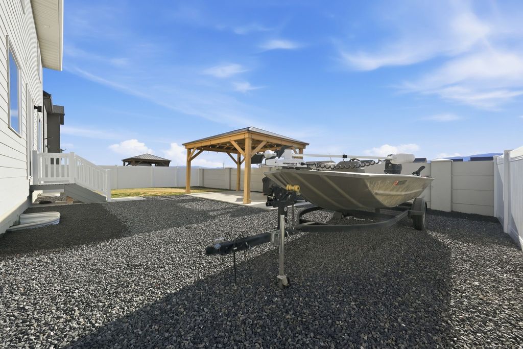 Spacious, thoughtfully designed floor plan loaded with upgrades and exceptional functionality. This home offers a 2 car garage plus an extended driveway accommodating up to 4 vehicles, with additional gated access leading to extended parking. Inside enjoy quality finishes and modern conveniences including quartz countertops, soft close cabinetry, abundant counter space, solar shades in main living areas, an oversized water softener, reverse osmosis system, and tankless water heater. The partially finished basement includes a gym area. Outside enjoy a large 12 X 16 covered gazebo perfect for relaxing or entertaining, while the fully landscaped yard features sod and an automated sprinkler system.