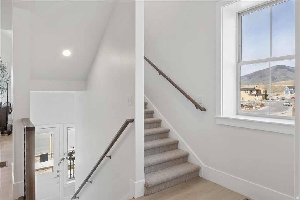 introducing the Jerome, a thoughtfully designed split-level home with a drive-under three-car tandem garage, mudroom, and stairway leading to the main floor. The open-concept living space features a gourmet kitchen with a large pantry, flowing seamlessly to the living room and deck. The owner's suite offers a massive walk-in closet, while a flexible bedroom or office adds versatility. Upstairs, a sunroom leads to a covered deck with backyard access, creating the perfect indoor-outdoor retreat. Located exclusively in Terraine, West Jordan's premier master-planned community, the Jerome offers style, comfort, and convenience.
