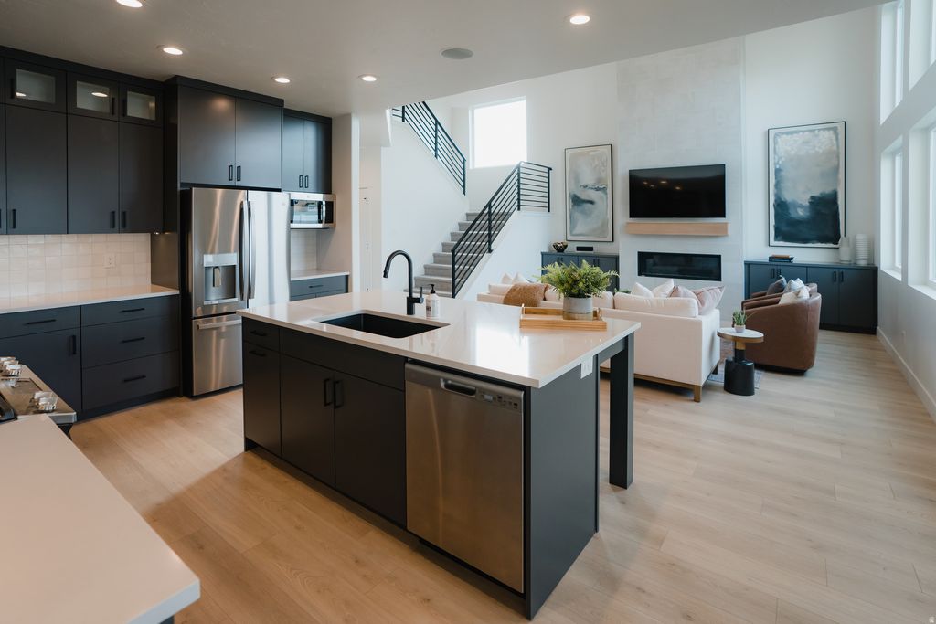Welcome to the NEW Lakeview Fields community in North Provo, featuring stunning mountain views and a prime location with quick access to I-15. The Newport floor plan is a must see, offering a spacious open layout with 9' ceilings, large windows for tons of natural light, a pocket office right off the kitchen, and a flex room off the entry. Enjoy a large great room, oversized 2 car garage with optional 3 car, and thoughtfully designed spaces throughout. Buyers have the opportunity to fully personalize their home, including exterior style with Modern or Farmhouse options, exterior colors, and all interior finishes. This home also includes high end features such as granite throughout, tile in bathrooms and laundry, wood laminate flooring, stainless steel appliances, and a tankless water heater. Built with energy efficiency in mind including a 95% furnace, low e windows, 2x6 exterior walls, upgraded insulation, and a zoned furnace system. Choose between a loft or optional fourth bedroom upstairs to fit your needs. Builder is offering a 3% flex incentive to use toward a rate buy down, closing costs or design center upgrades. Photos are of a previous model home. Come see the Keystone construction difference, at Lakeview Fields!