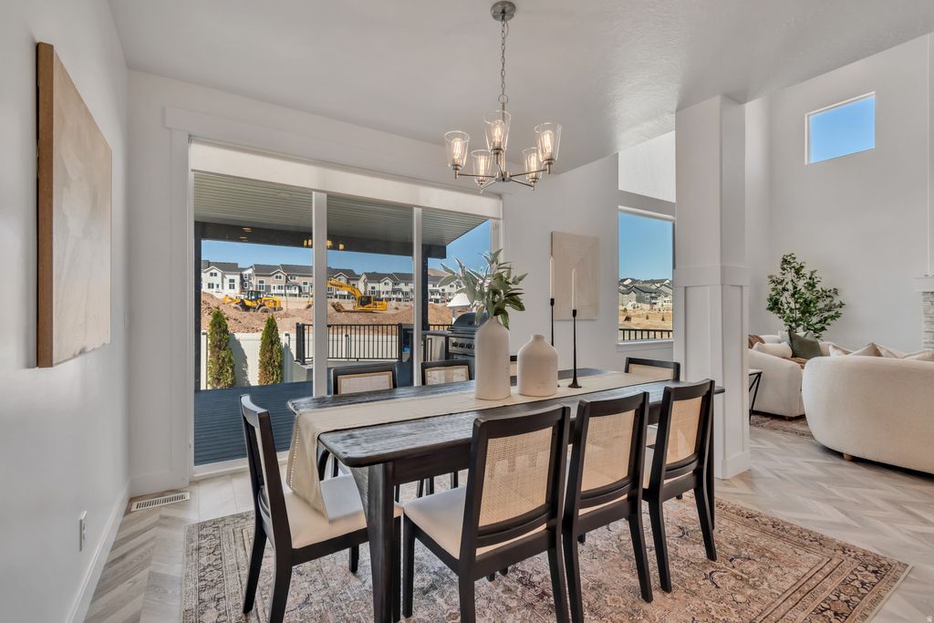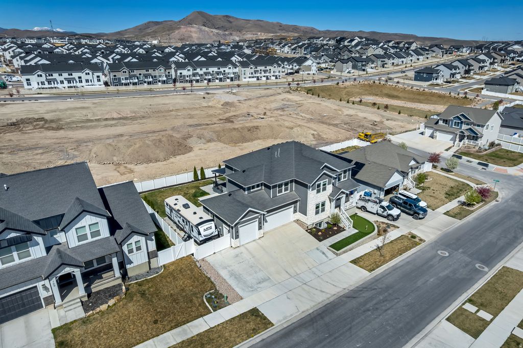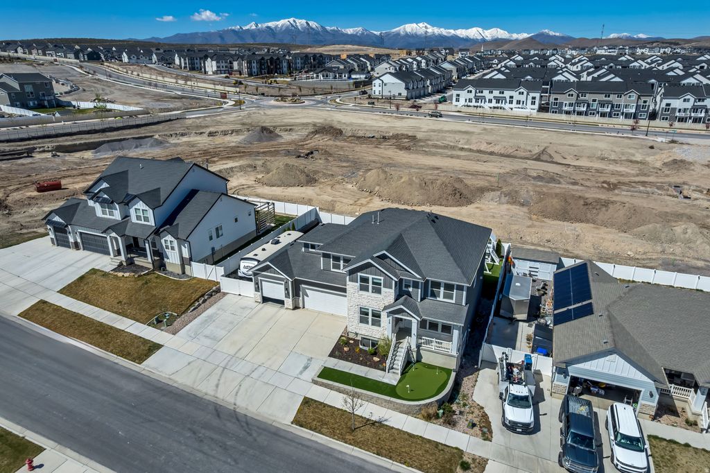 Discover the perfect place for your family to grow in this stunning 4,600 sq. ft. Saratoga Springs home. Thoughtfully designed for both everyday comfort and grand-scale memory-making, this pristine 6-bedroom, 3.5-bathroom residence offers a move-in-ready sanctuary near a premier upcoming neighborhood. The heart of the home is a sun-drenched main level featuring soaring two-story windows, elegant herringbone hardwood floors, and a cozy stone fireplace. The gourmet chef's kitchen, complete with double ovens and a massive central island, is ideal for pancake breakfast Saturdays or hosting large holiday gatherings. For added flexibility, the fully finished basement includes a separate entrance and a kitchenette/wet bar, perfect for a teen hangout, guest suite, or a quiet home office. Step outside into your private family resort. Professionally transformed in 2023, the backyard features a custom entertainment deck with a roof extension, integrated kitchen, and ambient lighting for summer BBQs. Kids will love the built-in tube slide and the evergreen turf play area, while the "plug & play" space is reinforced for a 9-person hot tub. This smart design combines a traditional manicured lawn with high-end turf for year-round, mud-free outdoor fun. Modern conveniences abound with a cemented RV pad and power plug for family road trips, a tankless water heater for endless hot showers, and smartphone-controlled Everlights. Freshly painted and deep-cleaned, this home shows better than a model. Avoid the wait for new construction and move your family into this ultimate forever home today.