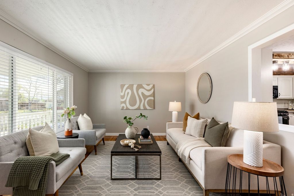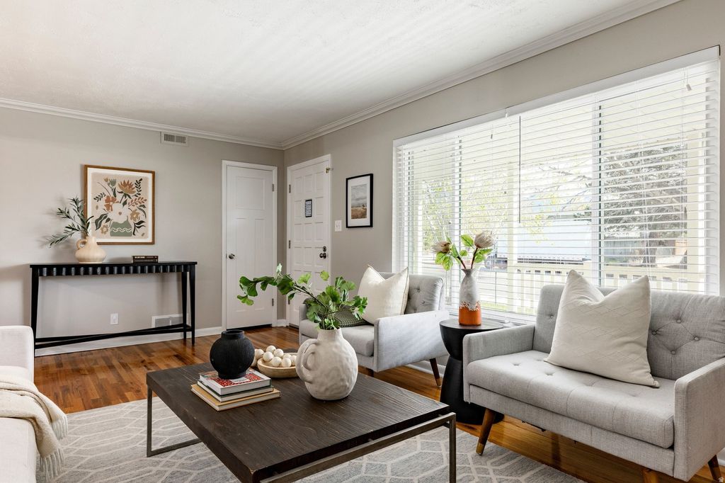 Set on .30 acres in East Sandy, with an expansive heated three car garage and dedicated RV or adventure van parking add rare versatility to this beautifully updated rambler offers an exceptional balance of comfort, functionality and refined mountain living. Ideally located just moments from Flat Iron Mesa Park and Pebblebrook Golf Course, and within close proximity to the world class recreation of Big and Little Cottonwood Canyons, the home provides both convenience and an enviable lifestyle. Inside, an open and inviting floor plan is anchored by hardwood floors and a welcoming front sitting room. The well appointed kitchen features a gas range, abundant cabinetry and a pantry, while the adjoining vaulted family room with a pellet stove fireplace creates a warm and inviting space for gathering. The main level includes two bedrooms, highlighted by a spacious primary suite with dual closets and a jetted soaking tub. An additional bedroom with new LVP flooring offers flexibility for guests, family or a home office, complemented by a secondary bathroom with a steam shower and granite topped vanity. The finished lower level expands the living space with a generous family room, additional bedroom, office or playroom and a large laundry, storage and mechanical area. Outdoors, a private patio provides a peaceful retreat. A substantial 12 by 16 shed with power completes this thoughtfully appointed property.