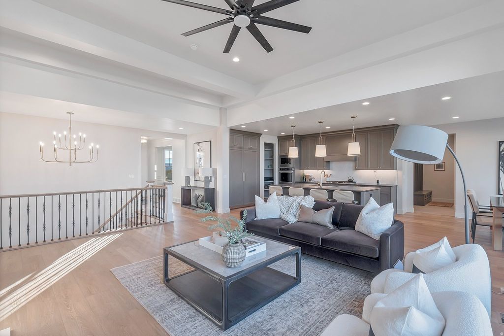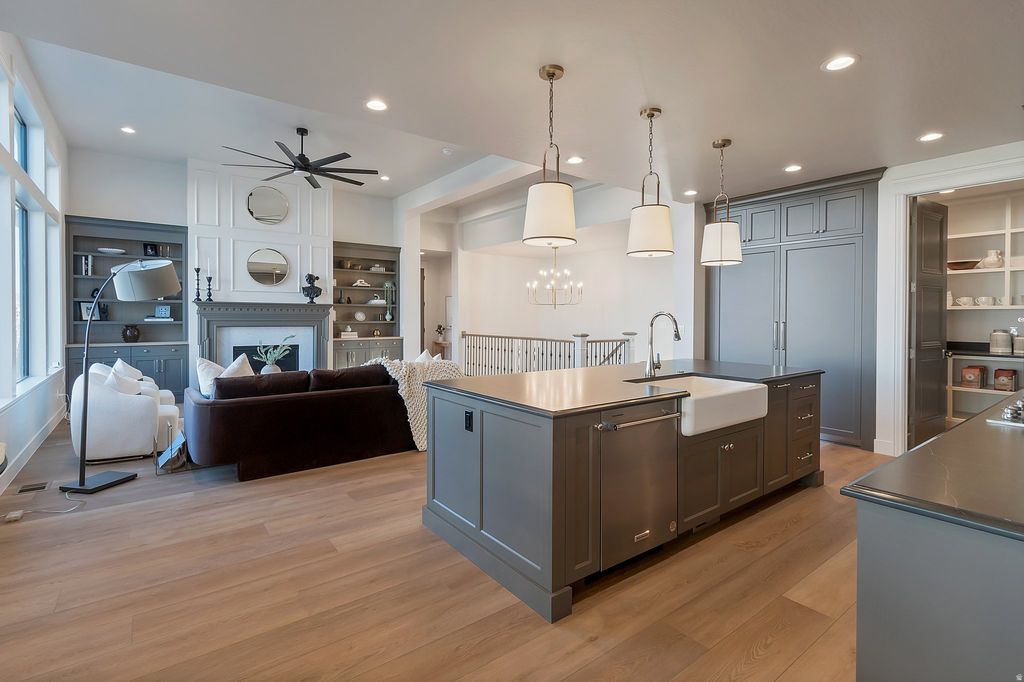 LOT#140. Symphony Homes stunning model home, the popular 'Harrison' plan, with a European Romantic exterior/elevation. Loaded with lots of upgrades and features, and incredible interior design and craftsmanship. Beautiful kitchen with high-end appliances and a walk-in butlers pantry. Custom millwork. Premium LVP flooring. Separate living room and an office off the entry. Amazing Primary Suite featuring a huge custom wardrobe room with serious "wow" factor, which features hookup for a stackable washer/dryer, and an incredible spa-like bathroom with free standing tub and oversized shower with built-in bench! Laundry room with sink. 12' ceiling in family room, and built-in shelves on each side of the fireplace. Basement features a finished gym with rubber floor and mirror wall, a media/theater room, and beautiful wet bar. Large covered patio. 3rd stall of garage is 34' deep. Tons of storage throughout. Gorgeous details throughout! See agent remarks about closing/possession details.