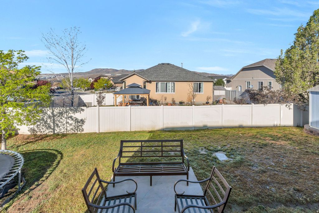 This 5-bedroom, 3-bath rambler boasts vaulted ceilings and granite countertops in the sought-after Thanksgiving Meadows community near Thanksgiving Point and Silicon Slopes! Enjoy an open floor plan with a large kitchen island and fully finished basement. The fully fenced, landscaped corner lot offers stunning mountain views. HOA amenities include a pool, clubhouse, and gym - this one checks all the boxes! Square feet as per County. Buyer and Buyer's Broker to verify all information including square footage and acreage.