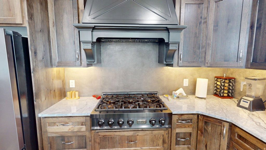 Step into refined living with this stunning custom-built estate, nestled among other luxury homes in a thriving Lehi neighborhood. Boasting 7,785 sq ft, this 8-bedroom, 4.5-bath masterpiece features a grand open layout with cathedral ceilings, expansive windows, and beautiful hand painted polymer concrete floors. The gourmet kitchen showcases a massive, grand quartz island, high-end appliances, custom cabinetry, and a walk-in pantry. Retreat to the luxurious primary suite with vaulted ceilings, spa-inspired bath, and oversized walk-in closet. Enjoy radiant heated floors, low utility costs, abundant storage-including a huge cold storage room-and a massive 4-car garage with space for up to 6 vehicles. You will also love the built in Wi-Fi repeaters in the home. Relax or entertain on the large deck overlooking the backyard-this home truly has it all. You have got to come and see this home. Square footage figures are provided as a courtesy estimate only and were obtained from county records. Buyer is advised to obtain an independent measurement. Bring us an offer!