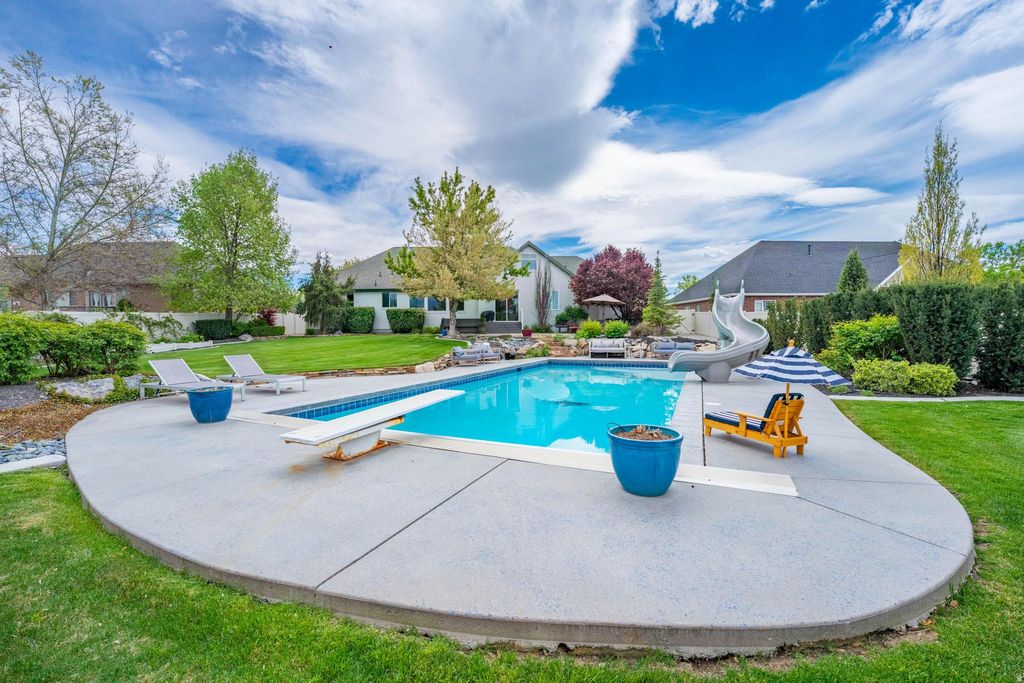 Welcome to this spacious luxury home in the desirable Gillman subdivision in Lindon. Situated on a generous half acre lot with mature trees, this impressive property offers over 5,400 sq ft of living space with 7 bedrooms and 5.5 bathrooms, providing plenty of room for large families, guests, multi-generational living and entertaining. Built in 2005 and remodeled with high end finishes, and roof replaced in 2025. The thoughtfully designed floor plan includes multiple living spaces, offering flexibility for home offices, guest suites, or hobby rooms. Step outside to enjoy the gorgeous backyard, featuring a swimming pool-perfect for summer gatherings, relaxing weekends, and outdoor entertaining. The spacious yard provides plenty of additional room for play, gardening, or your customization. Brand new Permanent Holiday Lighting installed in 2025. Located in a quiet residential neighborhood with NO HOA, the home offers privacy while still being close to shopping, dining, parks, and major commuting routes throughout Utah County.
