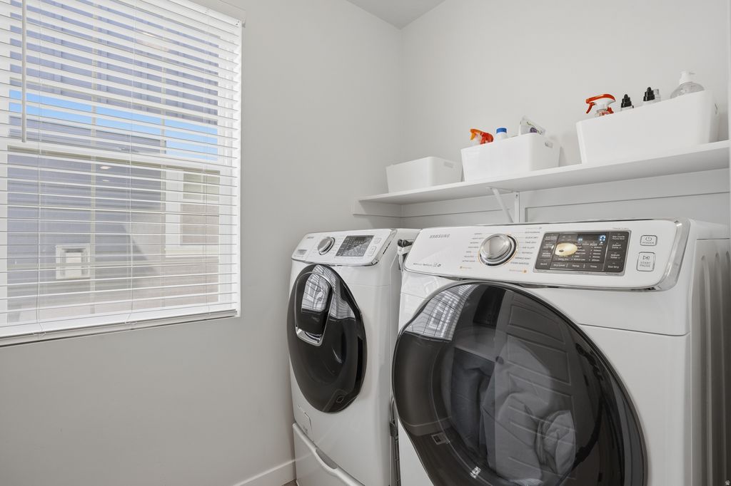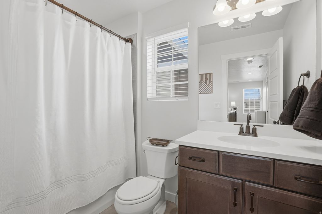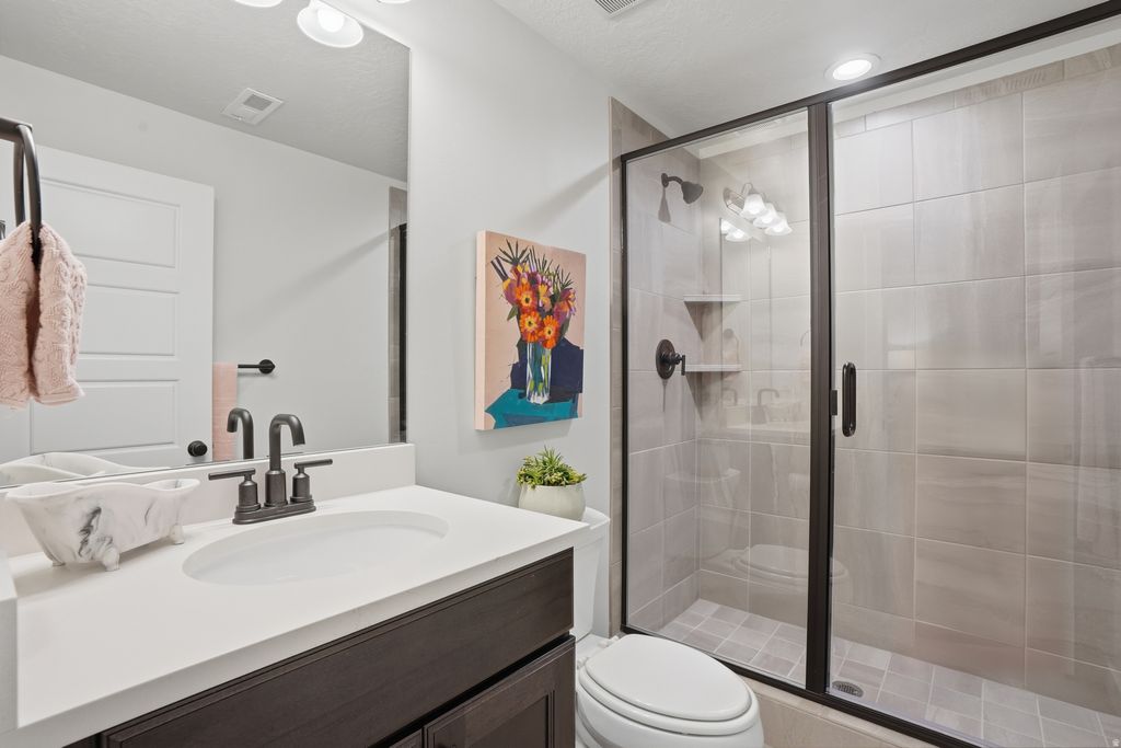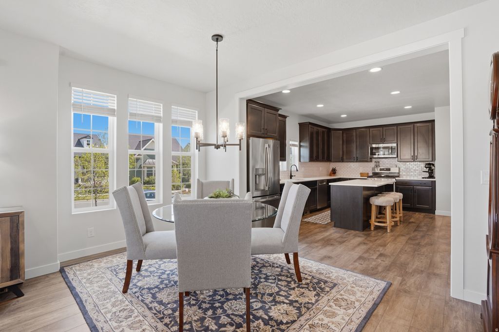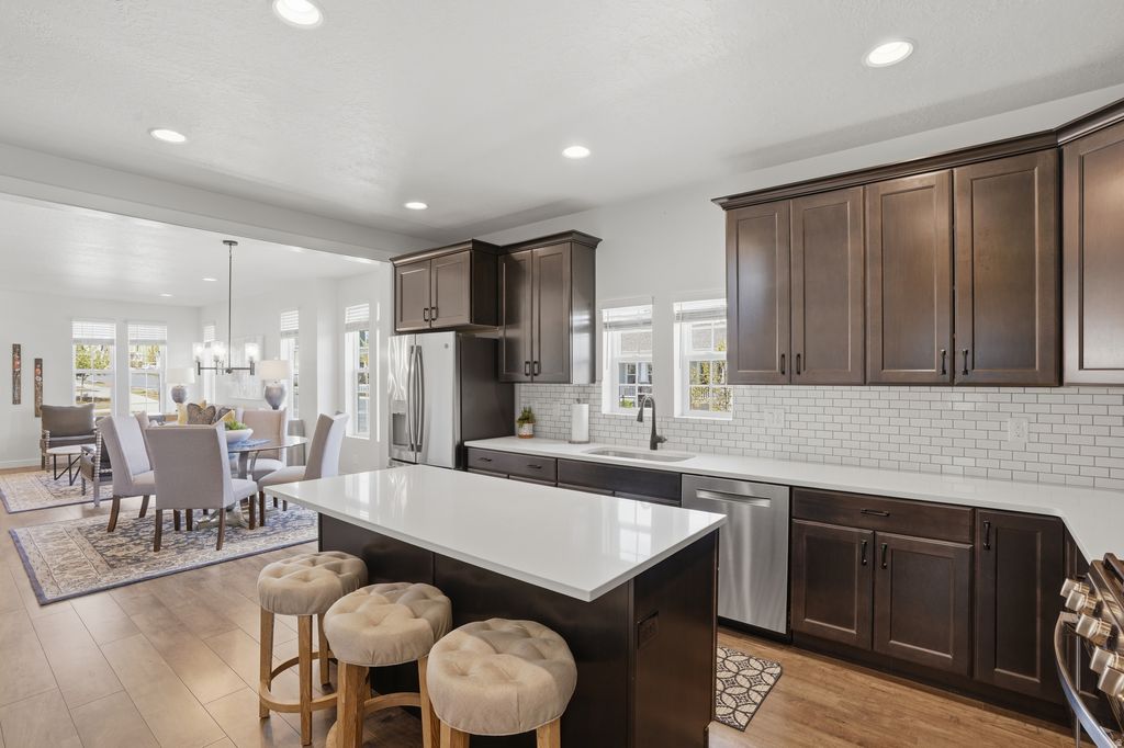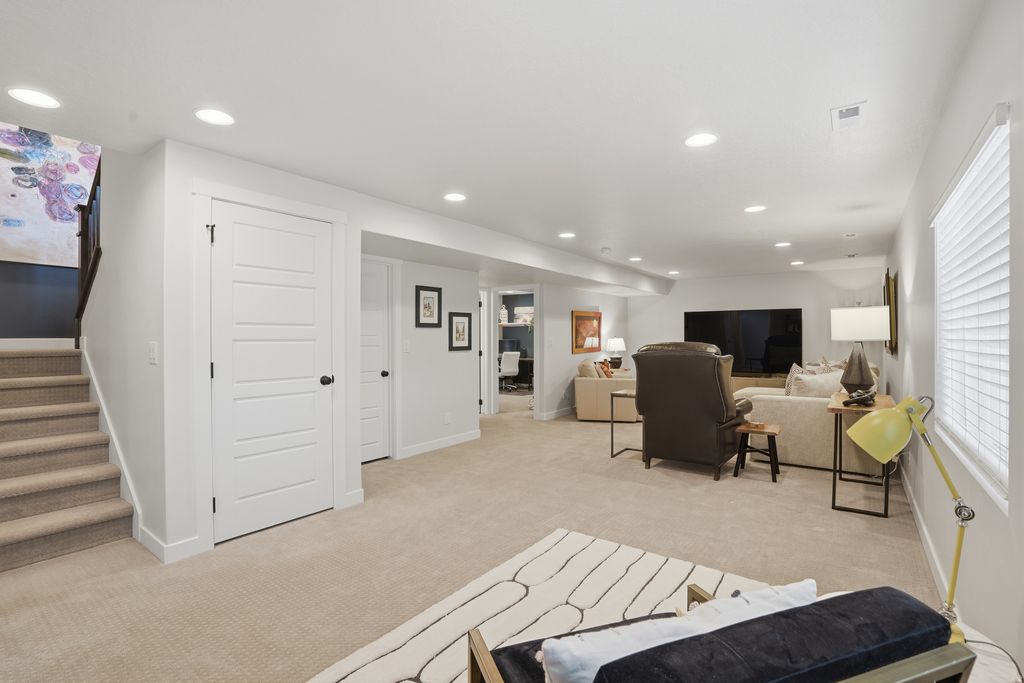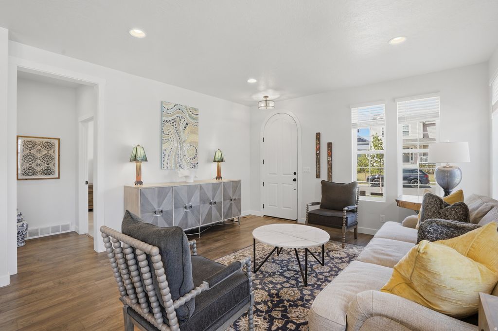 Open House Fri, April 10th 2-4 pm & Sat, April 11th 11-3 pm! Stunning, pristine Daybreak home, one owner, no pets or littles: they haven't even worn shoes in this home. It's in amazing condition! Primary Suite on the main floor, with gorgeous upgrades in the bathroom (quartz counters, oversized shower, walk-in closet, dual vanities, sep. WC). Laundry and living areas on the main floor. Windows and eastern, morning sun into the kitchen, dining and living room. Second story offers 2 bedrooms, a den and a full bathroom. Basement hosts immense storage space, a bonus room (think: office, workout/gym, library, extra closet space) and a bedroom with a 3/4 bathroom. Large entertainment space in this finished basement. Corner lot, with professional landscaping. Minutes from Soda Row and Oquirrh Lake, for paddle boarding & kayaking, pickleball, tennis, basketball, the Daybreak Community Center/gym and more. Centrally located in Daybreak, also near the U of U hospital, TRAX station, "downtown daybreak" and the Bee's baseball stadium. Come live a life like you're on vacation! (Garage is extra wide and tall!)