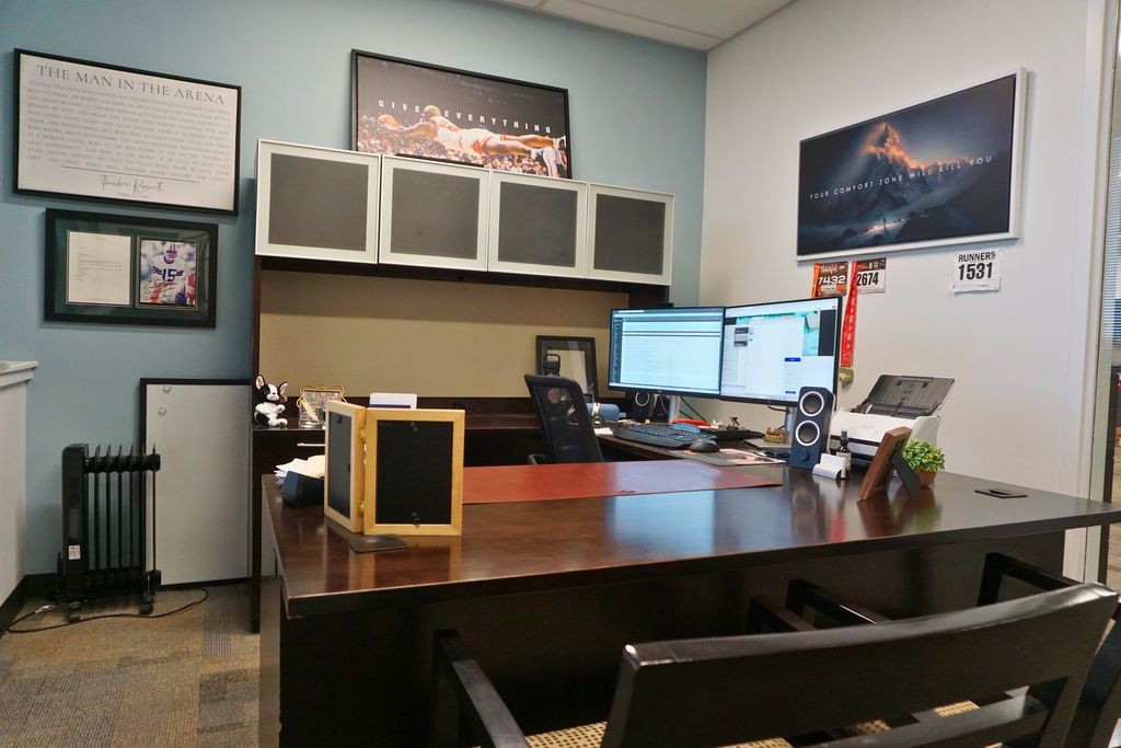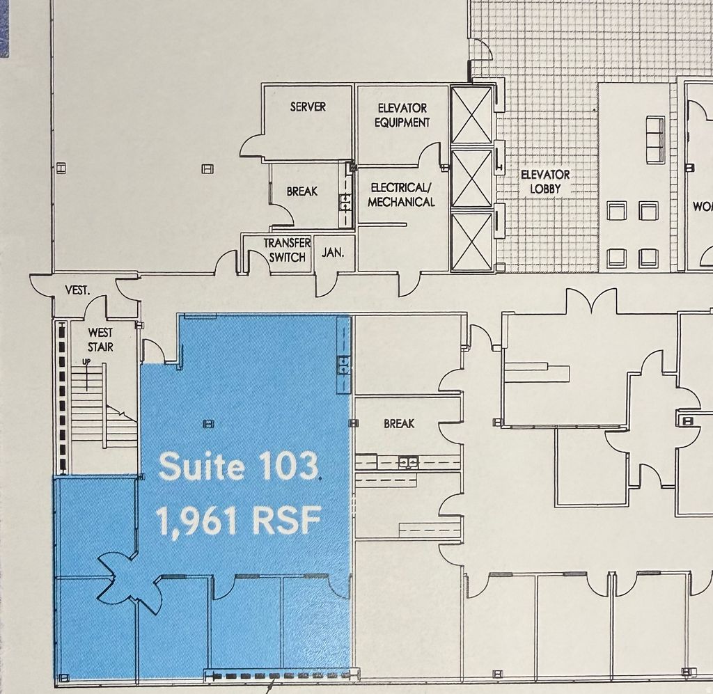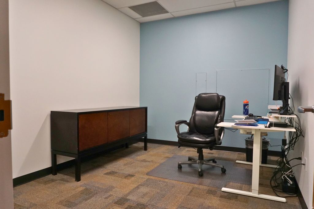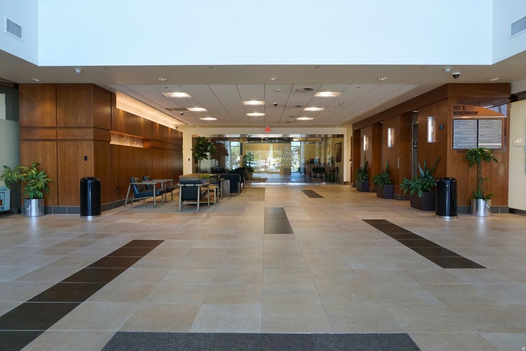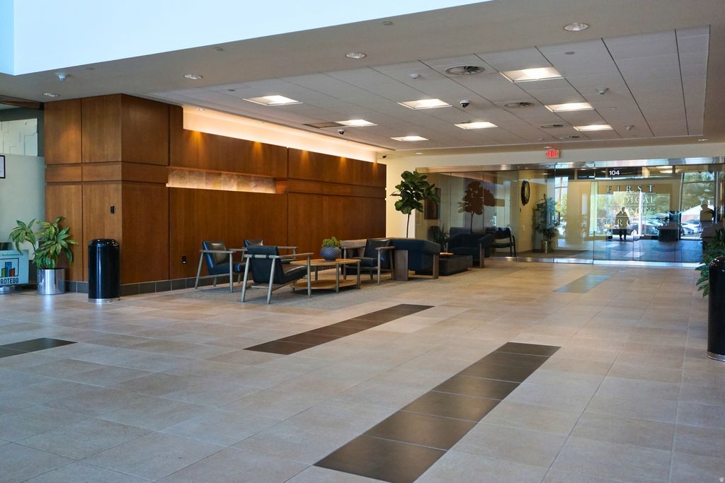 Main floor office space in a 5-story mid-rise office building. Impressive three-story atrium lobby. Unit 103 features 5 built-out offices, one kitchen/break room, and a big bull pin area. Porter service, keycard access, great security, ample parking, very well-maintained building, lots of natural light, and immediate freeway access to I-215. Several on-site restaurants and walking distance to Fashion Place Mall.