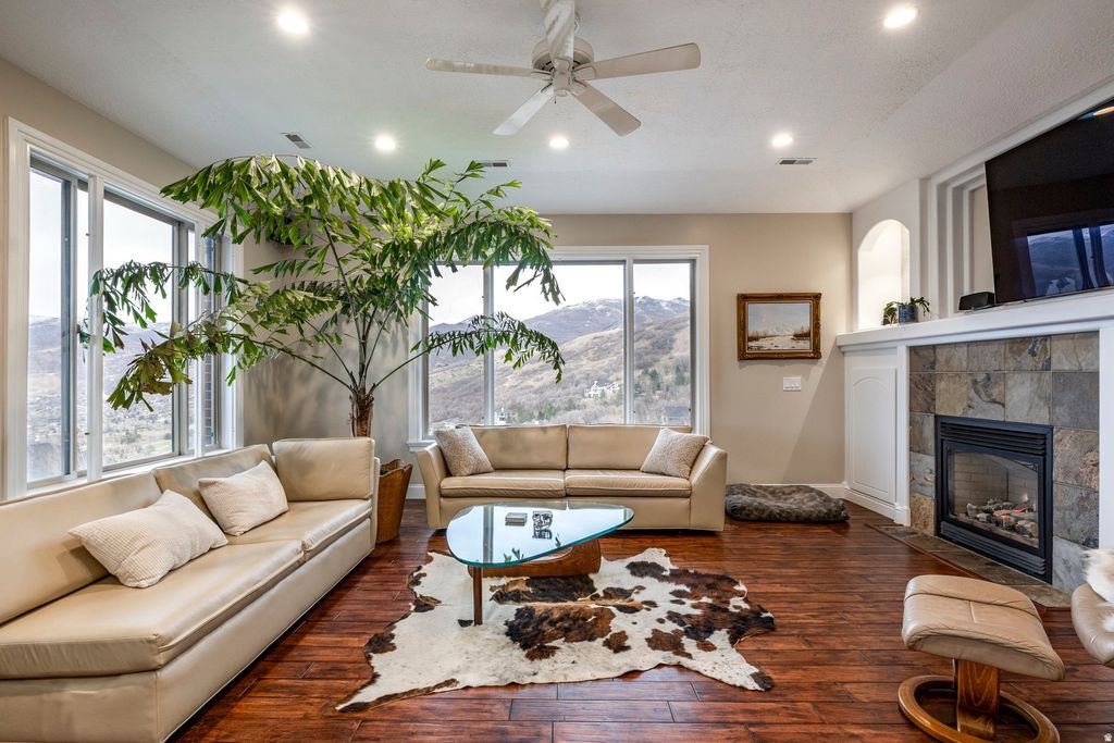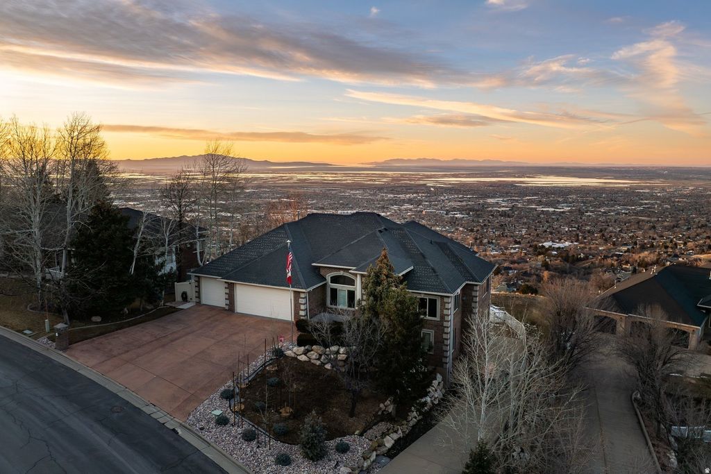 Welcome to Sunset Hollow. This grand and spacious home with one-of-a-kind sunset views, high on the east bench, is a MUST SEE. This fully brick, five-bedroom, four and a half bathroom home spans over 5900 sq ft with unobstructed views to the west. This home has ample storage and living space, a three car garage with electric car charging, and a heated home shop for any car or woodworking enthusiast. Sitting on over a half acre with mature landscaping and a fully fenced in backyard. An outdoor kitchen where you can enjoy the valley and lake views from the two tiered back porch. Make lasting memories with family and friends in this entertainer's dream home