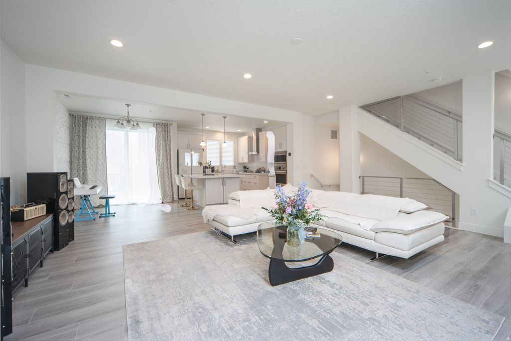 Townhouse with rooftop terrace and breathtaking views built by Sego Homes. Beautiful 3-bedroom, 2.5-bath townhome located just a 5-minute walk from the lake, Harmons Grocery, and a variety of restaurants. 5-minute walk to LDS church, community swimming pool and Bingham creek regional park. This thoughtfully designed home features an open-concept living and kitchen area with a half bath on the second floor, and all three bedrooms, two full bathrooms, and laundry conveniently located on the third floor. Enjoy year-round comfort with two HVAC systems, and seamless connectivity with built-in Wi-Fi mesh throughout the home. Entertain with ease thanks to pre-plumbing for a wet bar and pre-wiring for an electric fireplace on the fourth floor. The rooftop deck is hot tub-ready with 220V power and includes a natural gas hookup-perfect for outdoor living. A rare find in a prime, walkable location! Square footage figures are provided as a courtesy estimate only . Buyer is advised to obtain an independent measurement.