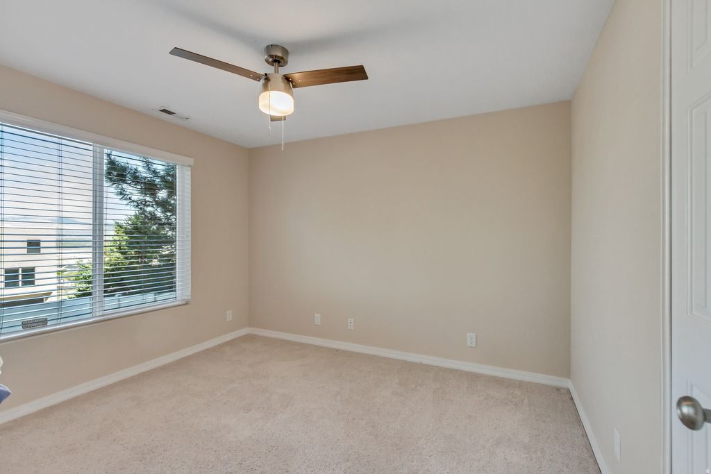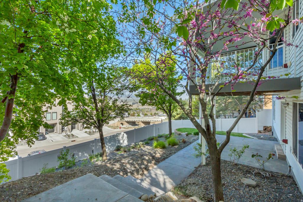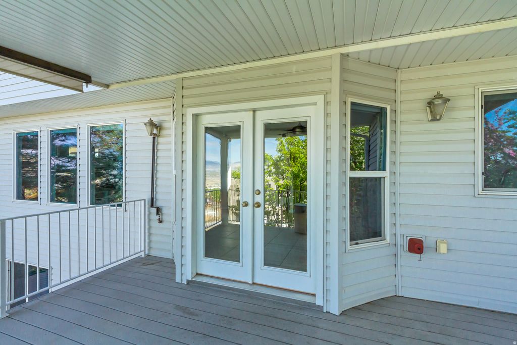 This beautifully maintained home offers the perfect blend of comfort, style, and functionality. Major upgrades include a new AC, furnace, and dual thermostat, ensuring efficient, cost effective, yearround comfort. The fully fenced property features lush grass, mature landscaping, and full irrigation in both the front and backyard. Enjoy relaxing or entertaining on the covered Trex deck, where you can take in gorgeous eastfacing sunsets and sweeping west Wasatch views. Inside, large picture windows fill the home with natural light and showcase the surrounding scenery. The luxurious primary suite is thoughtfully designed with an ensuite annex, ideal for a nursery, office, or fitness room, offering exceptional flexibility. The primary bathroom features a Japanese soaking tub, complemented by a large, wellappointed closet for effortless living. Storage is abundant throughout, including large closets, a spacious kitchen and pantry, a permitted shed, and a garage with retractable pulldown stairs for easy access to additional storage. Thoughtfully designed and impeccably cared for, this home offers charming living, exceptional outdoor space, and practical upgrades in a great location-a rare opportunity you won't want to miss.