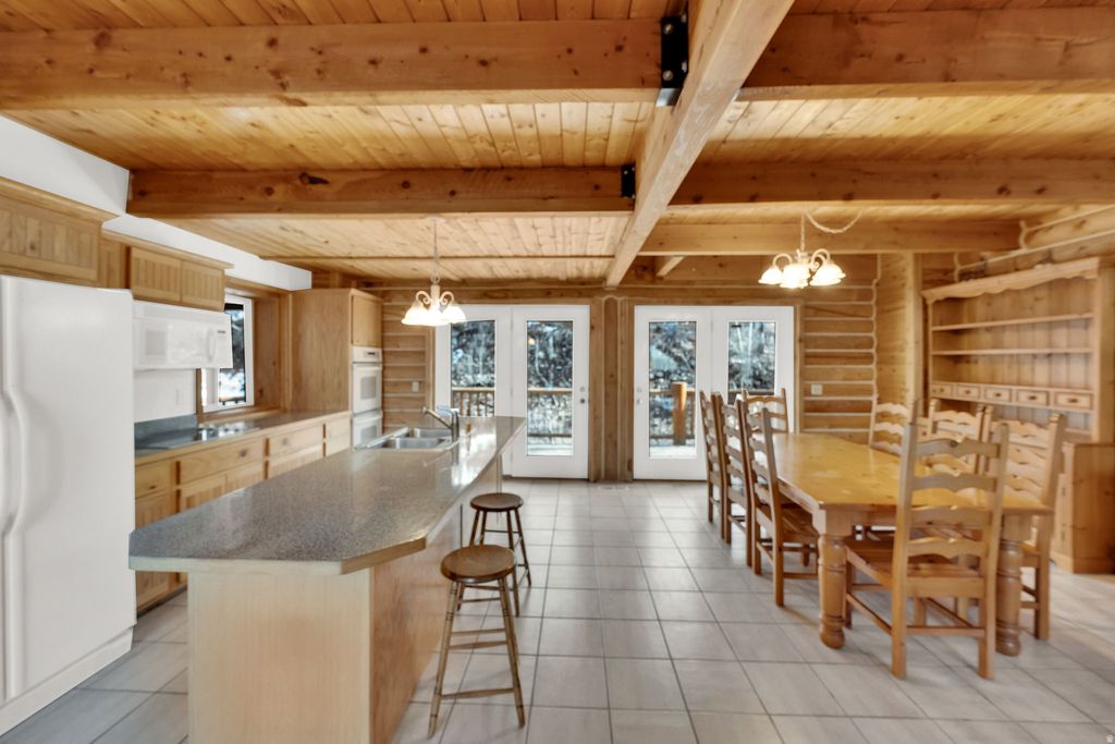 Perched in the upper mountain of Timber Lakes, this stunning log cabin offers a spacious, bright interior paired with breathtaking views and abundant wildlife right outside your door. Soaring vaulted ceilings and expansive windows flood the home with natural light, creating an open and inviting atmosphere, while a beautiful fireplace serves as the focal point. Perfect for cozy mountain evenings!Thoughtfully designed for comfort and functionality with main level primary ensuite with large walk-in closet, this rustic log cabin features generous living spaces ideal for gathering and relaxing. The lower level offers plenty of storage and a built-in sauna, providing the perfect place to unwind after a day of outdoor adventure.New roof in 2024. Sold furnished and ready for immediate enjoyment, this Timber Lakes retreat perfectly blends comfort, scenery and mountain lifestyle. Convenient year round access makes this property enjoyable during every season. Imagine snowmobiling right out your front door into endless private access directly into Uinta National Forest! Only an hour to the SLC airport, 45 minutes to Provo and just minutes from all the fabulous amenities of the Heber Valley, Midway & Park City. Enjoy the beauty of every season with year-round accessibility, whether you're escaping for a peaceful weekend or settling into full-time mountain residence.