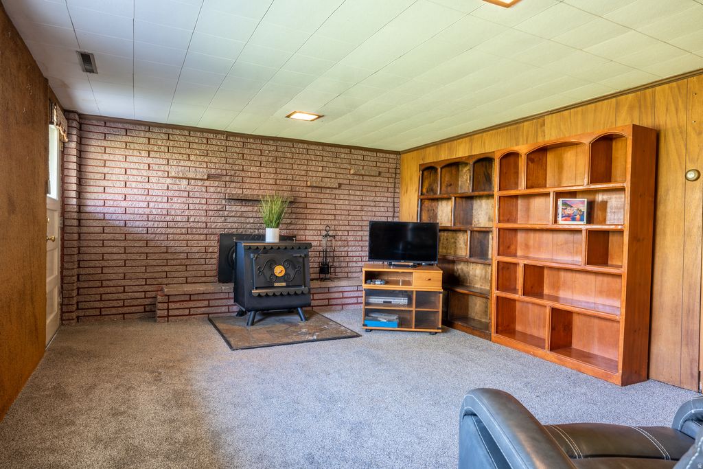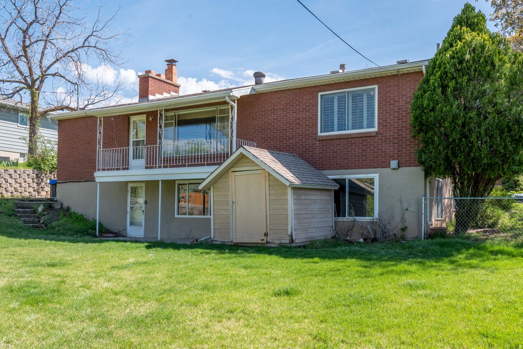 This charming East bench home in Bountiful is ready to call home. Natural light streams in each room including the walkout basement. The kitchen is fit with well-kept wood cabinets and solid surface corian countertops. The charming living room has a wood fireplace, large windows and opens onto the large covered deck. The main level also has two comfortable bedrooms and a well laid out bathroom. The basement has a large family room, two bedrooms, a bright bathroom and large storage and laundry. With the walkout basement entrance this basement could very easily be converted to a mother-in-law suite or even basement apartment. The yard is literally the perfect size and has some of that English charm!