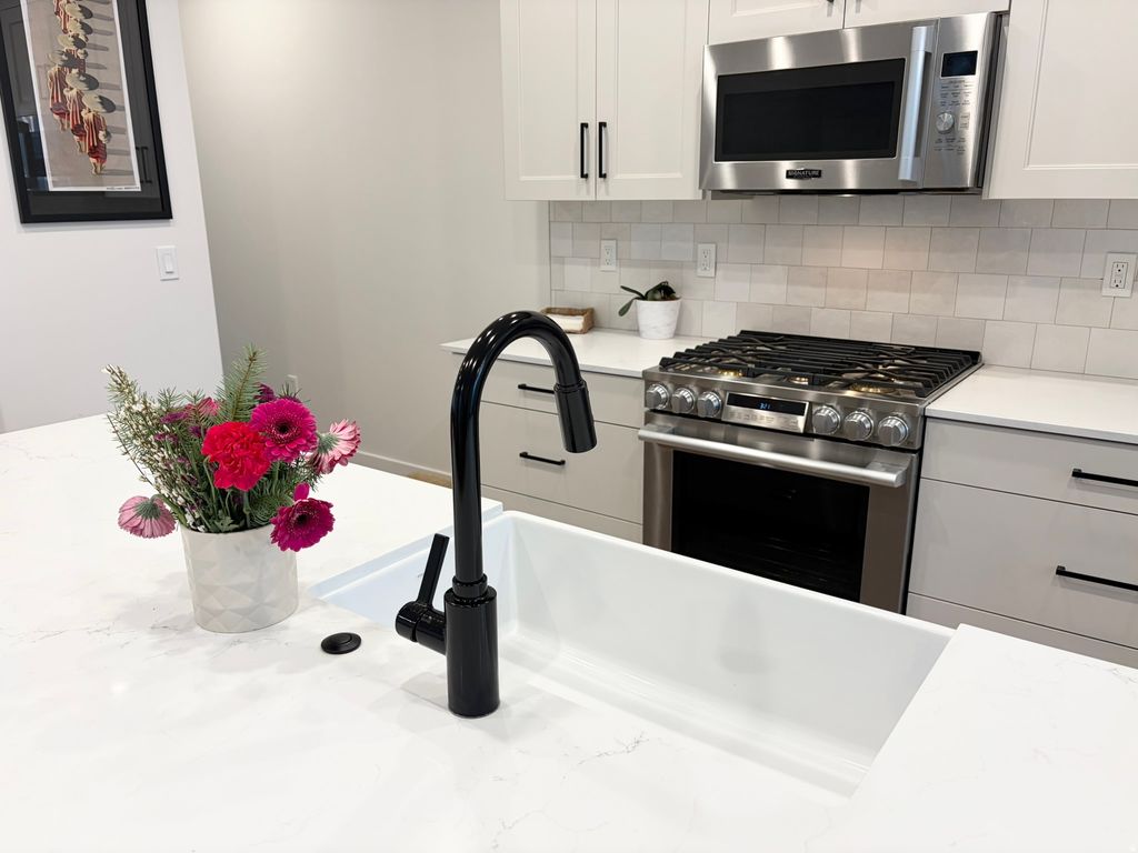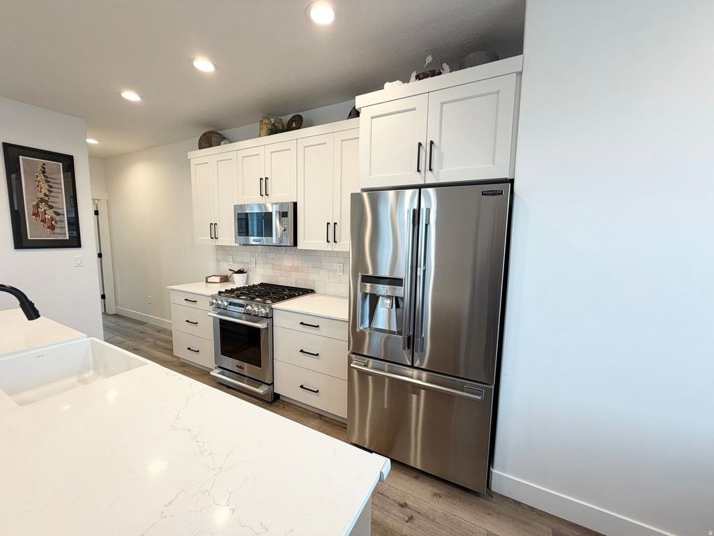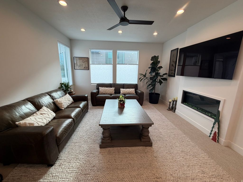 Luxury Townhome. You'll fall in love with this stunning townhome located in the Fort Union neighborhood of Midvale-in a prime location just minutes from downtown Salt Lake City. As an end unit, this home enjoys an expansive wall of windows that floods the space with abundant natural light. It features 2 spacious bedrooms, each with its own private en-suite full bathroom, including a soaker tub in the primary suite for ultimate relaxation. With 2.5 bathrooms total and a finished 2-car garage complete with insulated doors, convenience and comfort are built in. Step inside to discover high-end finishes throughout, including: *Stunning expansive 12-foot island offering abundant seating and a central gathering space. *Beautiful quartz countertops with a designer farmhouse sink. *Upgraded cabinetry with soft-close doors and drawers. *Upgraded Signature Series stainless steel appliances, including a gas range. *Elegant designer tile work in the bathrooms. *Sleek Euro glass shower doors for a modern touch. *No need to worry about window treatments; new blinds are included. *Features a sleek modern fireplace that adds warmth and sophistication to the living space. *Fenced concrete patio for BBQ. Whether you're hosting friends or unwinding after a long day, this property offers a perfect blend of luxury, convenience, and stunning mountain views. With this fully finished home, your weekends are yours again-no projects, no to do list. All information is deemed reliable, however, Buyer is advised to verify all information.