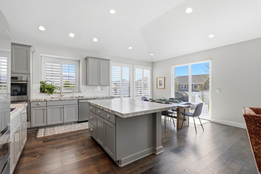This is the one you've been waiting for! This stunning rambler features 4 large bedrooms (with both main level bedrooms being ensuite), 3.5 total bathrooms, a home office/den with french doors, vaulted ceilings and plantation shutters throughout. The perfectly landscaped backyard boasts a salt water pool, RV parking, and a massive space for entertaining with wide-open views. Since 2022, the home has been upgraded with a second HVAC system to allow for separate zones for the main level and basement, the salt water pool was installed, as well as a new slider door, and many other upgrades. Enjoy movies nights with the projector in the basement and choose how you want to customize the remaining 25% of the unfinished space. Located in the beautiful Midas Crossing neighborhood, you'll be close to schools, restaurants and prime shopping. OPEN HOUSE Saturday 4/11 9:30am-12:30pm and Sunday 4/12 1-3pm.