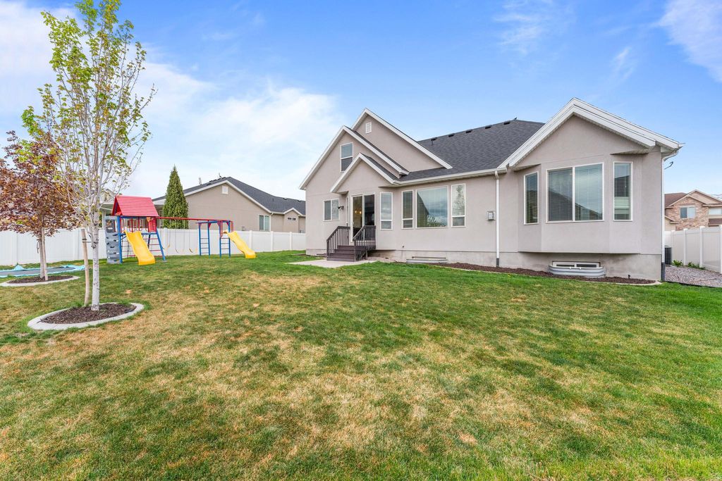 NORTH LEHI. SKYRIDGE Boundary. THIS IS THE ONE PEOPLE WAIT FOR. You're tucked into one of the best neighborhoods in north Lehi-walking distance to Skyridge High, 5 minutes to I-15, and right in the heart of Silicon Slopes, Thanksgiving Point, and Traverse Mountain. Location like this doesn't come up often. Now the house... MAIN FLOOR LIVING-DONE THE RIGHT WAY. Owner's suite + office/ second bedroom on the main level. Functional, efficient, and built for real life. Wide open layout with vaulted ceilings and a kitchen/family room setup that actually works when you've got people over. Not chopped up. Not awkward. Just clean, open space. And the details matter-upgraded, modern light fixtures throughout that don't feel like every other house on the market. UPSTAIRS = FLEXIBILITY. Two oversized bonus rooms with their own bathroom. Perfect setup for whatever you need-kids, guests, gym, game room... you name it. BASEMENT = EQUITY SITTING THERE WAITING. 9' ceilings and a finished family room already done. Plus room for THREE more bedrooms and a bathroom. Finish it out and you've got a 7 bed / 4 bath home that punches way above its price point. BACKYARD = ACTUALLY USABLE. Fire pit with built-in seating. In-ground trampoline. Swing set, and fully fenced! Space to live, not just look at. Open house Saturday April 11, 2026 from 3pm-5pm! Hurry before this one is GONE!!