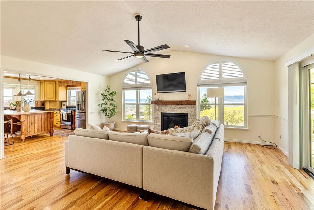 **Open House Saturday April 18th 12-2pm** Beautiful Provo home with breathtaking valley views! This timeless, elegant home features rich hardwood floors, three gas fireplaces, and an abundance of natural light throughout. Recent updates provide peace of mind, including two newer water heaters, a newer roof, water softener, furnace, and high-quality Pella Impervia fiberglass windows. Enjoy new carpet upstairs, insulated garage doors, and a transfer box in the garage for emergency preparedness that can power the whole home with generator use. The basement has a bedroom that can easily be used as a craft room or a bedroom. There is amble storage between the basement and garage. As a bonus, take in front-row views of the Stadium of Fire fireworks right from your own backyard every year! Don't miss this opportunity to enjoy the highly desirable Oak Hills area, this home offers both comfort and unforgettable scenery.