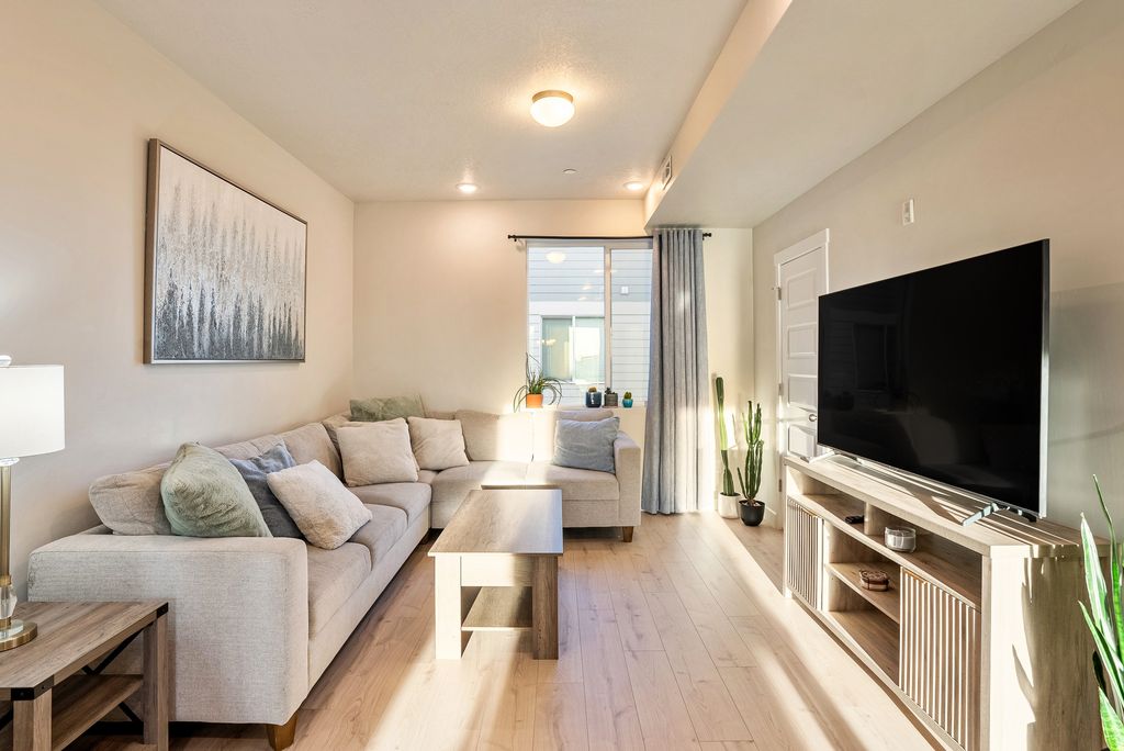 Enjoy the best views in the community and a new-construction lifestyle with little to no maintenance, just minutes from the party in Downtown. This perfectly positioned, furnished, end-row condo-style townhome has had just one owner and offers a shockingly low HOA fee of $180/month, with electricity as the only utility paid separately. Yes, really. Internet, insurance, landscaping, snow removal, water, trash, and more are included. Dawson Place is all-electric, sustainable, and easier on both the environment and your wallet. Each bedroom features an attached ensuite bath, while the tandem garage is large enough for a truck, another car, and storage. Offering more scenery and privacy than most, along with the peace of mind that comes with newer construction and long-term appreciation potential. Ever-changing Oquirrh Mountain views, unforgettable sunsets and sunrises, a coveted corner lot, and included furnishings and appliances make this property especially rare. Live here for a year, rent it afterward, and lock in an investment near Utah's projected $6.6B 2034 Winter Olympics, the $3.5B Power District underway, and the $27M Glendale Regional Park. Questions or showing requests? Contact listing agent Sydney Rosenblatt.