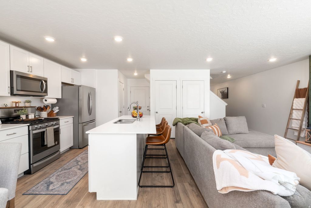 Combining the perfect environment of convenience with the beauty of attentive craftsmanship, this stunning home is the embodiment of your home ownership dreams. From the welcoming farmhouse exterior to the abundance of natural light inside, you will experience the ideal in home design, comfort, and a feeling of being right at home. Design selections have been carefully considered and integrated as part of this immaculate home. Come in and gather in the family room and snuggle up to the cozy fireplace. Beautiful millwork throughout provides that extra touch of luxurious detail. The unfinished basement offers flexible options with the versatility of serving as a family room, an office or even a fourth bedroom--you choose what works for you. Perfectly situated in a neighborhood that offers a community pool, multiple community parks, a splash pad, pickleball courts and quick access to the nearby Patriot Park and Jordan River Trail, you will experience a quality of life at its finest. BRAND NEW PUBLIC LIBRARY is within walking distance too. REFRIGERATOR INCLUDED. Square footage figures are provided as a courtesy estimate only and were obtained from county records. Buyer is advised to obtain an independent measurement.