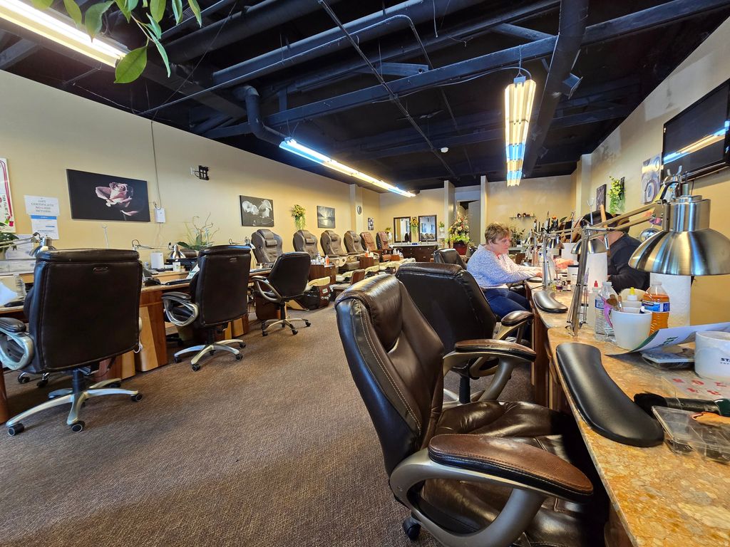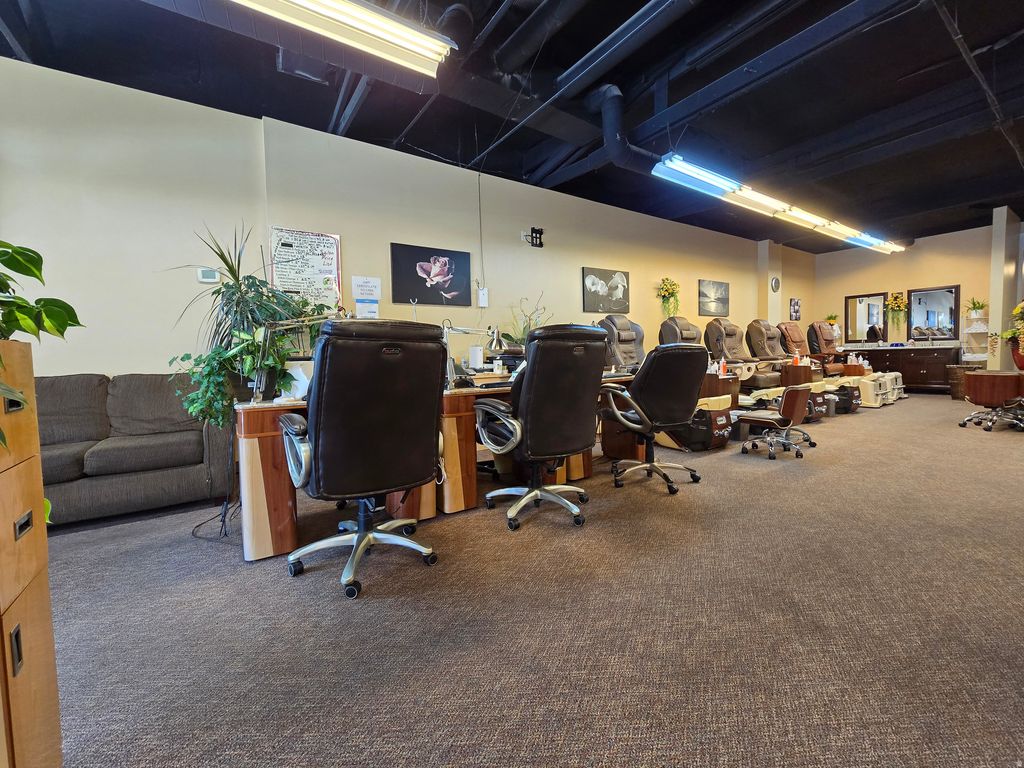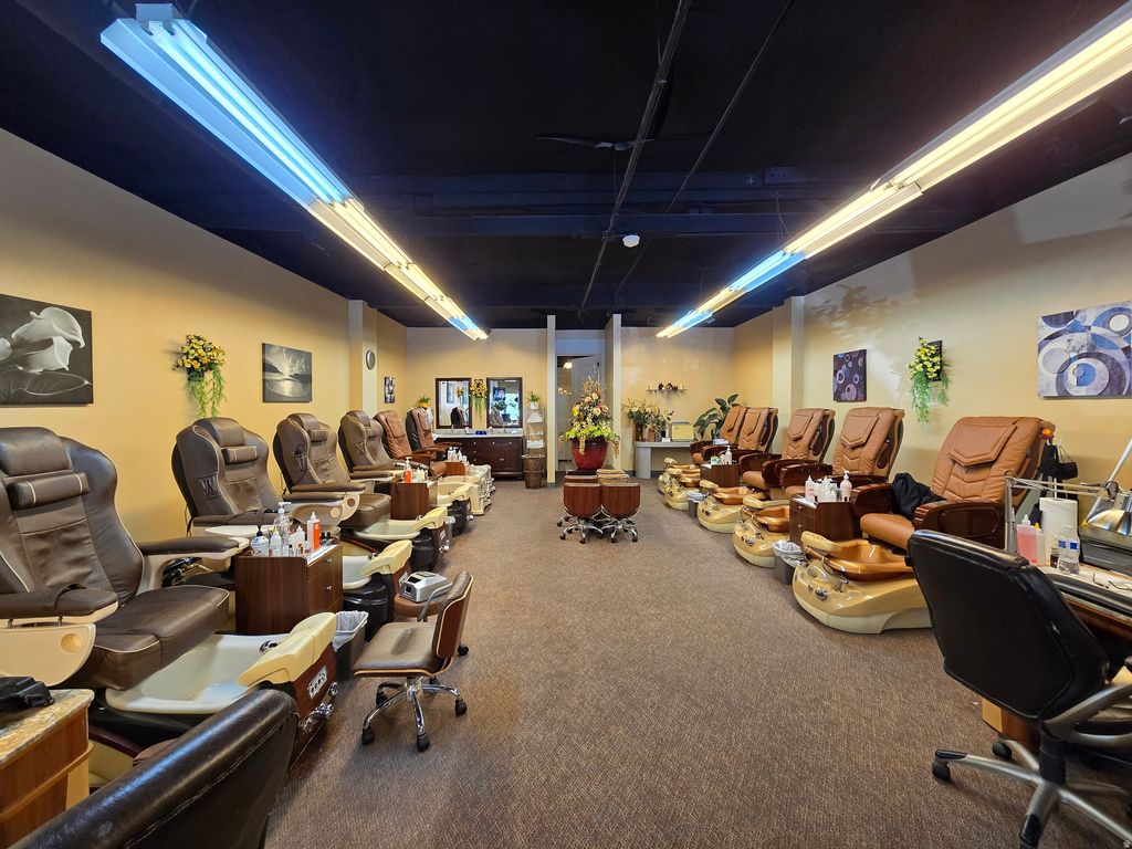 Beautifully maintained nail salon in a prime central location with excellent visibility. This turnkey space features 7 nail stations, 11 pedicure massage chairs, 2 esthetician tables and great tenant improvements throughout. Much more included. Take advantage of the favorable lease terms and step right into a fully operational salon ready for your personal touches. A fantastic opportunity for an owner-opperator or anyone looking to expand their beauty business. Business only.
