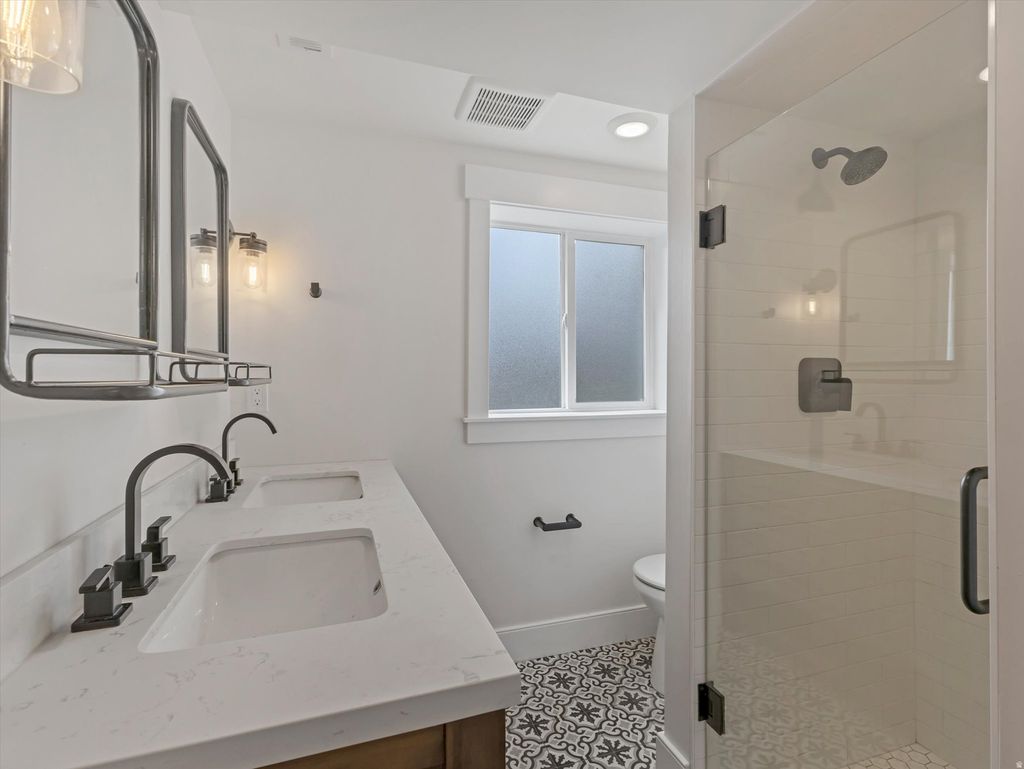 A rare find in Holladay, this 5-bedroom, 3-bathroom home is steps from Mount Olympus Park, Morningside Elementary, and Churchill Jr. High. The main level features three bedrooms and two bathrooms, with warm hardwood floors, a gas fireplace, and custom wood finishes throughout. The walkout basement offers a daylight ADU/apartment with a new white kitchen, quartz countertops, a gas fireplace, and new LVP flooring, along with two bedrooms, one bathroom, and separate access with off-street parking, ideal for rental income or multi-generational living. The kitchen is both functional and well-appointed, with a side door near the garage and an open concept that flows to the living area. It features solid surface countertops, timeless walnut cabinetry, roll-out shelving, soft-close drawers, double ovens, a pot filler, and a pantry. Bathrooms include modern vessel sinks and illuminated glass countertops. Enjoy mountain and valley views, with sunsets to the west from the enclosed porch, and views of Mount Olympus from the front steps. Other upgrades include, plantation shutters, newer paint, new carpet and both levels have laundry. Conveniently located near downtown Salt Lake City, schools, and world-class ski resorts.