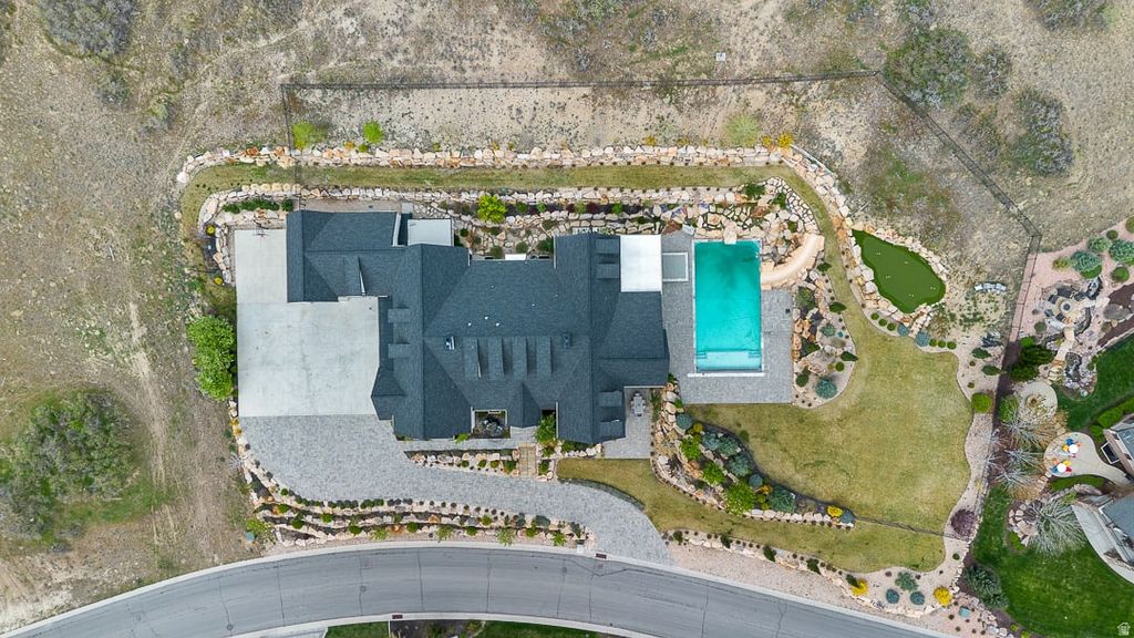 Set within the prestigious gated enclave of Pepperwood, this exceptional contemporary estate offers a rare blend of architectural design and lifestyle. Spanning over 10,000 square feet, the home is thoughtfully designed for both grand entertainment and comfortable daily living. The open-concept layout features an immense great room with vaulted, beamed ceilings and clerestory windows showcasing the stunning mountain views that can be seen throughout the house, as well as a gorgeous chef's kitchen with Bosch appliances, custom cabinetry, a butler's pantry, and a generous central island allowing for multiple gathering areas for hosting. Just off the dining is the pool, hot tub, exterior bathroom, and spacious patio allowing for seamless indoor-outdoor integration. The main floor offers a den/office with beautiful views as well as two lavish suites with luxurious, spa-like baths; one of which features cathedral ceilings and a walk-out to the pool & patio. There's a gym/studio area and 5 more bedrooms, including a fun, futuristic 'bunk' room designed as crew quarters on a spaceship and a walk-out lower level with a home theatre, billiards, and second, fully equipped kitchen. Don't forget the putting green or the 6 car garage to accommodate recreational toys and automobiles. This modern-classic, four-season resort style home is set on a double lot of 1.59 acres and affords exceptional views and exclusivity. Amenities include a 24-hour guard & gated entrance, swimming pool, hot tub, pavilion, park, playground, sand volleyball, basketball, tennis, and pickle ball courts. Just beyond the secluded community are hiking and biking trails, world-class skiing at Snowbird and Alta in Little Cottonwood Canyon, and it's convenient to Park City & Deer Valley ski resorts and the new Salt Lake International Airport. SEE 'TOURS' tab for drone video and 2D Matterport. Square footage figures are provided as a courtesy estimate only. Buyer is advised to obtain an independent measurement.
