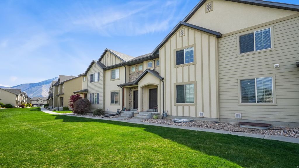 Awesome townhome in the desirable Maple Mountain development! So conveniently-located! Schools, churches, shopping, outdoor recreation are all at your fingertips. You can be to Costco or headed up the canyon in 5 minutes either way. Just a block away from the newly-announced LDS Temple. This is the largest floorplan in the community. You'll love the spacious kitchen with walk-in pantry and great views overlooking the ample common area. Huge Primary Suite boasts vaulted ceilings, a sitting-room, a walk-in closet and en-suite bath. Basement is partially finished with a 4th bedroom which also has an en-suite bath. There is still plenty of room to grow and lots of storage. Home is well-kept. A bit dated, but priced accordingly. Come check it out!