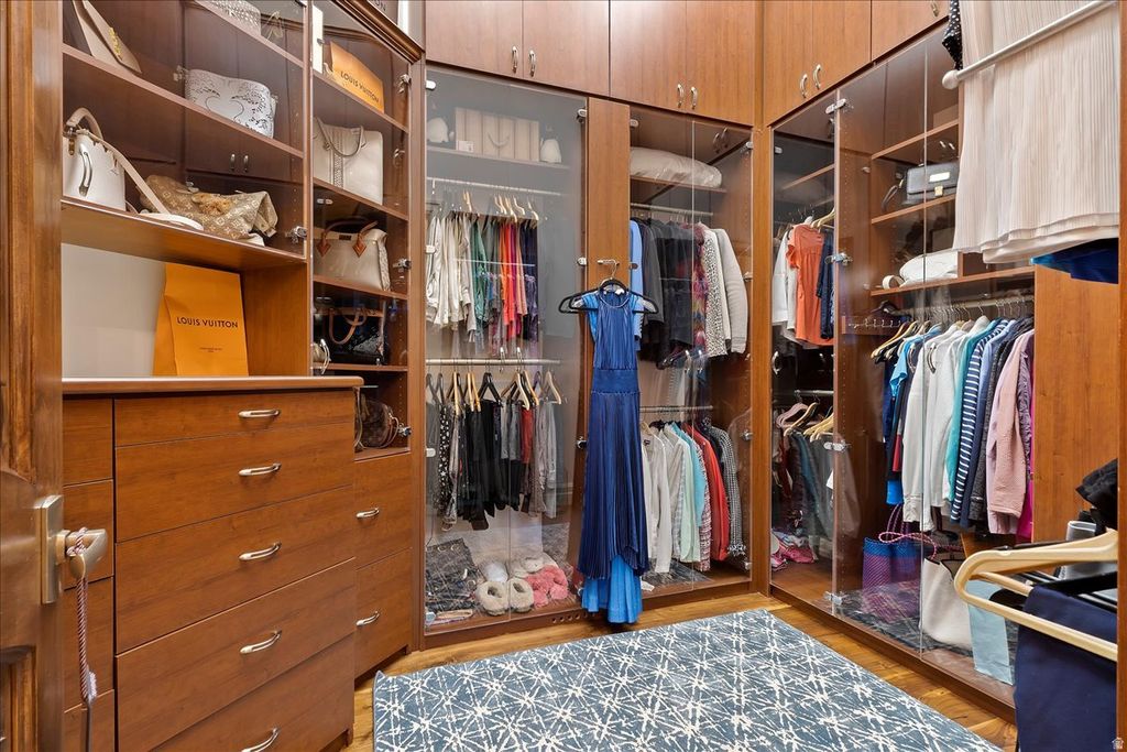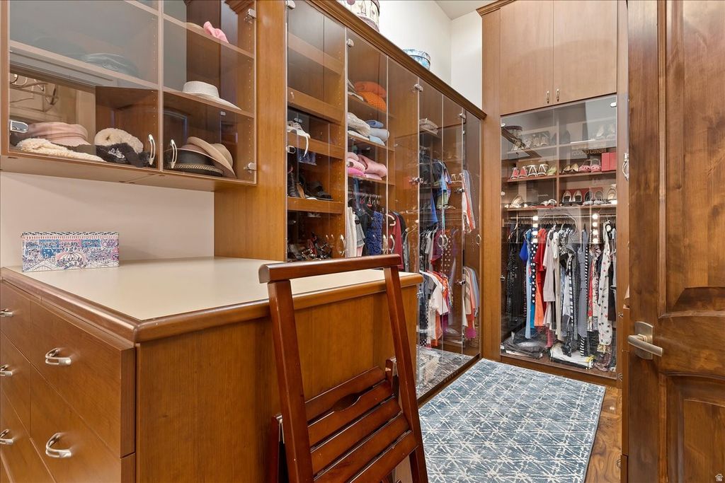 Tucked away on a private, tree-lined lane in Holladay, this resort-style estate offers rare privacy in a picturesque setting with an exceptional array of amenities. Situated on 1.15 acres with sweeping mountain views, this beautifully updated home blends timeless architecture with refined, modern living. The main level features an elegant living room, formal dining, and a stunning, well-appointed kitchen offering generous workspace, abundant cabinetry, and quality appliances, all flowing seamlessly into inviting gathering areas. A striking office with walnut ceilings, flooring, and woodwork. The main-level primary suite is a peaceful retreat, capturing beautiful mountain views and featuring a spa-inspired bath, dual closets, glass-encased vertical flame columns and a private deck. Expansive retractable doors open to a spectacular outdoor setting with a saltwater pool with water features, spa, and outdoor BBQ area. The lower level features high ceilings, three spacious bedrooms, three baths, a theater, a home gym, a wine gallery, and a game lounge. A detached private guest house offers its own kitchen, family room with a two-sided fireplace, large bedroom, and spa bath, ideal for extended stays or private guest accommodations. Gated and impeccably landscaped, the grounds showcase stunning mountain views and a sense of seclusion, just minutes from shopping, dining, golf, and canyon access. Expertly constructed by Dan Stewart, Tri-City Construction.