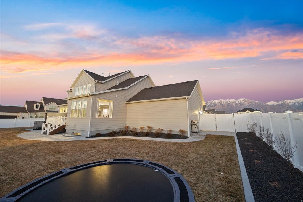 Stunning luxury semi custom Cadence Home located in Vineyard's Holdaway Fields community. This nearly 5,000 sq. ft. property offers 6 bedrooms and 4.5 bathrooms, thoughtfully designed with the primary suite conveniently located on the main level. Enjoy the open-concept floor plan featuring vaulted ceilings in the great room, seamlessly flowing into a gourmet kitchen complete with gas range, double ovens, oversized walk-in pantry, and ample space for entertaining. Custom paint, accent walls, and window treatments elevate the home throughout, while laundry rooms on every level add exceptional convenience. The oversized 3 car garage provides generous room for storage, workshop space, toys, and additional side parking allows space for extra vehicles or an RV. Situated on a large corner lot, this professionally landscaped yard is an entertainer's dream, featuring a swim spa, in-ground trampoline, large deck, and plenty of outdoor living space. Enjoy breathtaking mountain and lake views in this outstanding community that offers sidwalks, parks, and scenic trails. This exceptional property blends luxury, functionality, and lifestyle in one the County's most sought after neighborhoods.