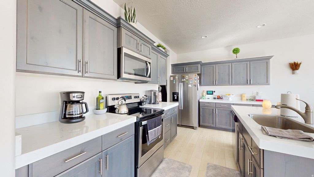 Welcome to this beautifully maintained 5 bed, 3.5 bath home located in the heart of Vineyard Utah. this spacious property features a finished basement, perfect for additional living space and gatherings. The modern kitchen is equipped with granite countertops and stainless steel appliances. Alarm system and cameras included. Situated in a family-friendly neighborhood, this home is just a short walk from the local elementary school. the community offers a variety of amenities, including scenic biking trails, multiple pools and hot tubs, a splash pad, and several parks, making it the perfect place fro an active lifestyle. Don't miss your chance to own this wonderful home in one of Utahs most desirable areas! Square footage figures are provided as a courtesy estimate only and Buyer is advised to obtain an independent measurement. HOA Remarks: