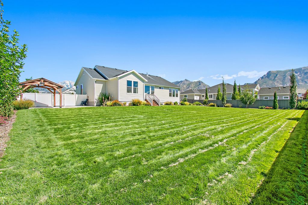 * Open House Saturday 3/7 12-2 PM * Rare opportunity to own on a flat .41-acre lot in Mountain Ridge, one of Highland's most desirable neighborhoods, with no HOA and walking distance to parks and schools. A grand entry with double-height ceilings and large windows fills the receiving room with natural light, creating an inviting space ideal for a home office, music room, or formal sitting area. The kitchen, dining, and living areas flow together in an open yet comfortable layout designed for everyday living and entertaining. Expansive windows overlook the backyard where a beautiful garden and pergola create a peaceful outdoor setting that feels like country living while still being close to everything Highland has to offer. Enjoy quiet evenings or weekend gatherings in this inviting outdoor space. The fully finished basement offers excellent flexibility with additional bedrooms that could easily serve as a home gym along with a spacious game and media area perfect for gatherings, movie nights, and recreation. The home also offers generous storage throughout. Well cared for and move-in ready, the property offers a rare combination of space, comfort, and location. Located in an HOA-free neighborhood within walking distance of Mountain Ridge Junior High and Mountain Ridge Park, a 17-acre park that includes an all-abilities playground, walking paths, pavilions, multi-use grass fields, a baseball/softball field, basketball court, and eight pickleball courts, All information is deemed reliable but not guaranteed. Buyer and buyer's broker to verify all information including square footage. Square footage figures are provided as a courtesy estimate from county records and buyer is advised to obtain an independent measurement.
