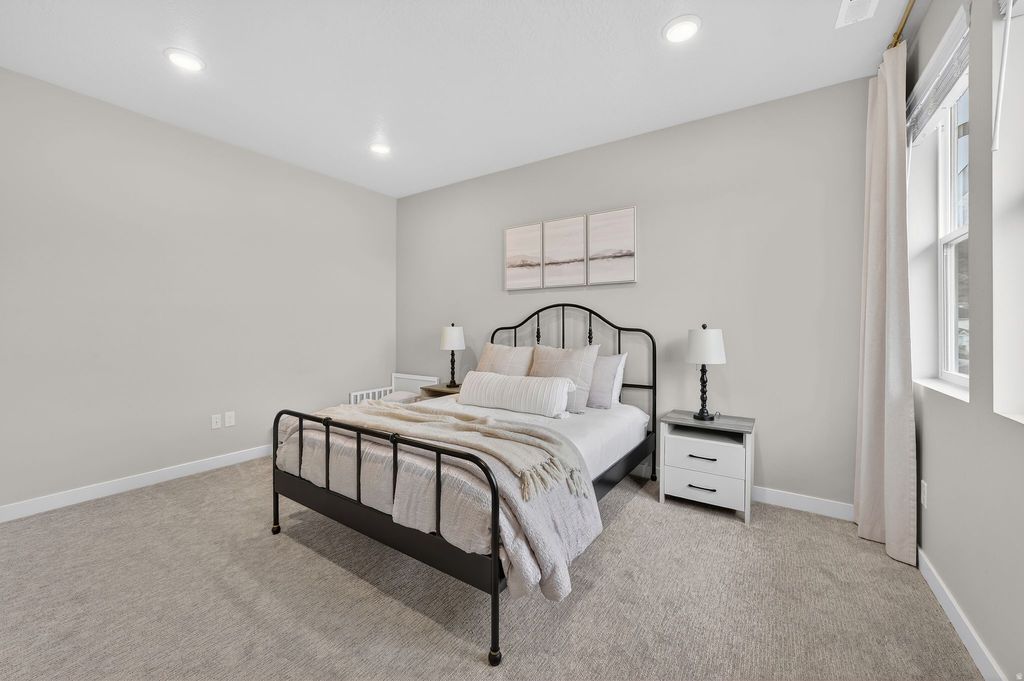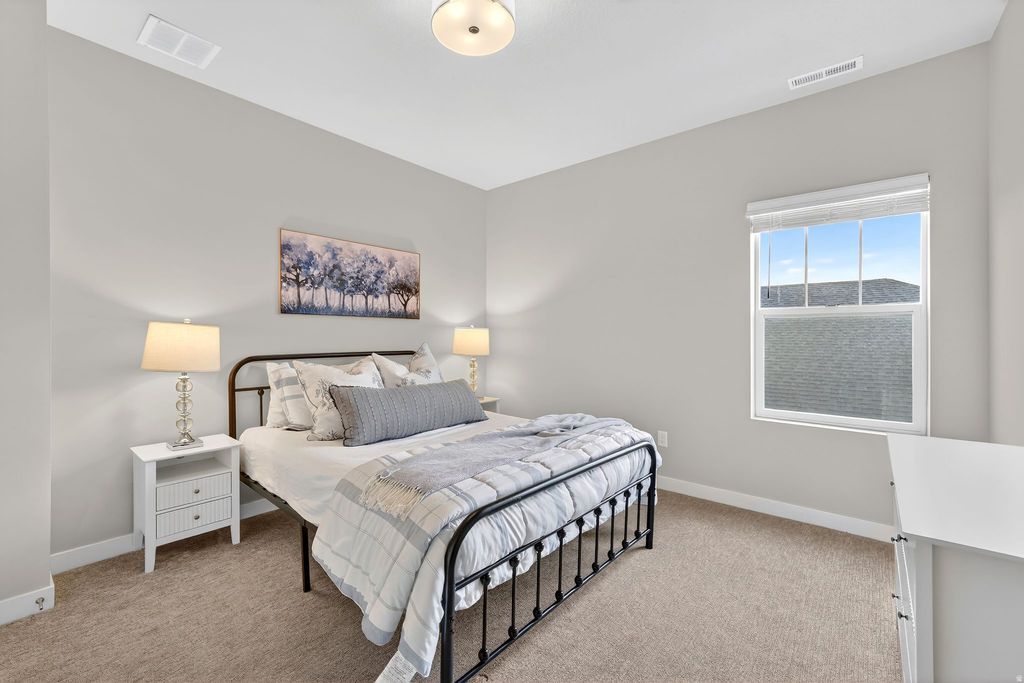 Located in the desirable Highland neighborhood, this beautifully finished home offers modern design and functional living. The open floor plan features LVP flooring, 8 ft doors, high ceilings in entry and modern bathrooms just to name a few. The gourmet kitchen includes quartz countertops, stainless steel appliances with gas range, custom cabinetry and spacious island. The fully finished basement includes a family room, laundry room, bedroom, bath and kitchenette- ideal for guests, entertaining or multigenerational living. Enjoy a low maintenance backyard with turf landscaping and ample patio space. Conveniently located near miles of trails, fishing ponds, Highland Glen Park, everyday amenities such as grocery stores & restaurants. Easy access to Silicon Slopes and I-15.