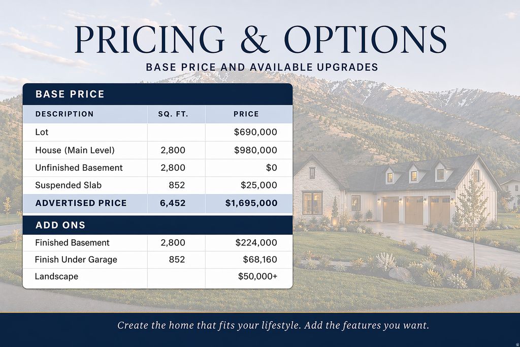 The perfect unobstructed view of Maple Mountain! Pricing includes an unfinished basement. Finished basement and other customizations available. Contact the listing agent for more information.